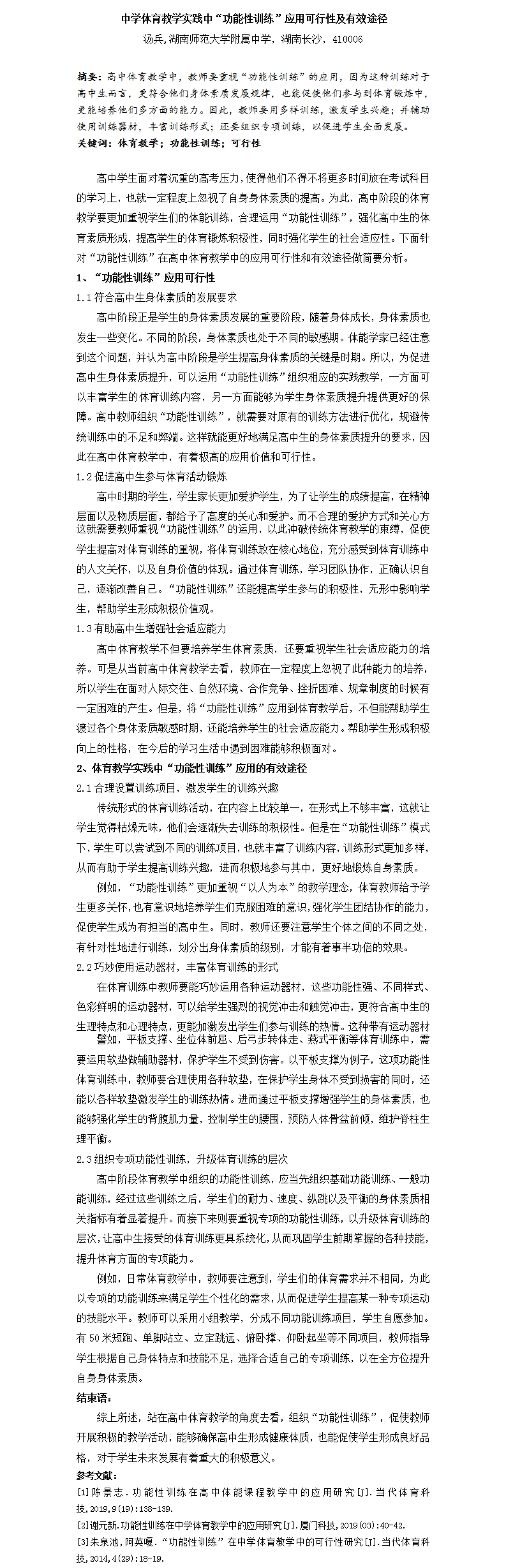 学校部门 论文评比 《探索》电子期刊 发表论文 中学体育教学实践中“功能性训练”应用可行性及有效途径 发布:管若婧 来源:科研与教师发展处 日期:2020-09-07 人气:分享到: 上一篇:浅谈体育实习老师学写体育与健康课教学案例 下一篇:中学生合唱艺术中的美育影响 通知公告 更多 2024年端午节放假通知 湖南师范大学附属中学2024年寒假 关于湖南师范大学开展“师大好网 湖南师大附中2024年端午节教职工 湖南师大附中2023-2024学年度考核工 湖南师大附中2024年公开招聘专任 最新动态 更多