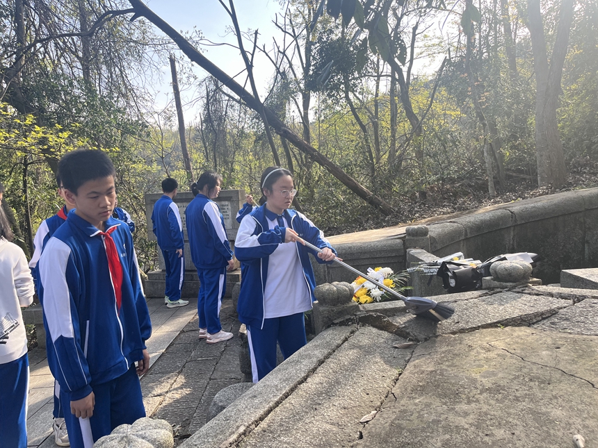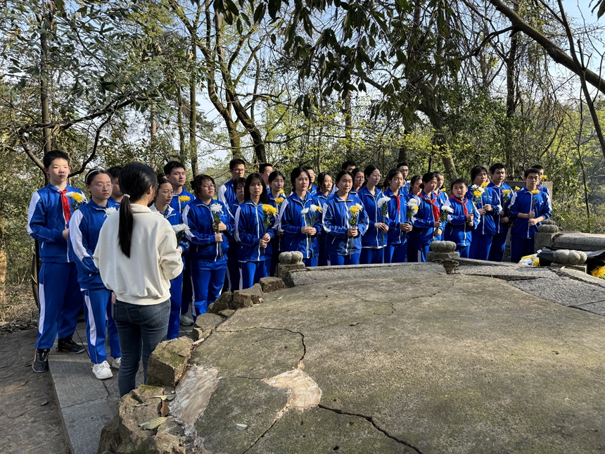 3月28日下午,大队辅导员张冰洁、青年教师代表金刘博文带领团员代表、队员代表徒步前往岳麓山,进行湖南师大附中庆祝建校119周年暨“慎终追远 缅怀先烈”主题活动。