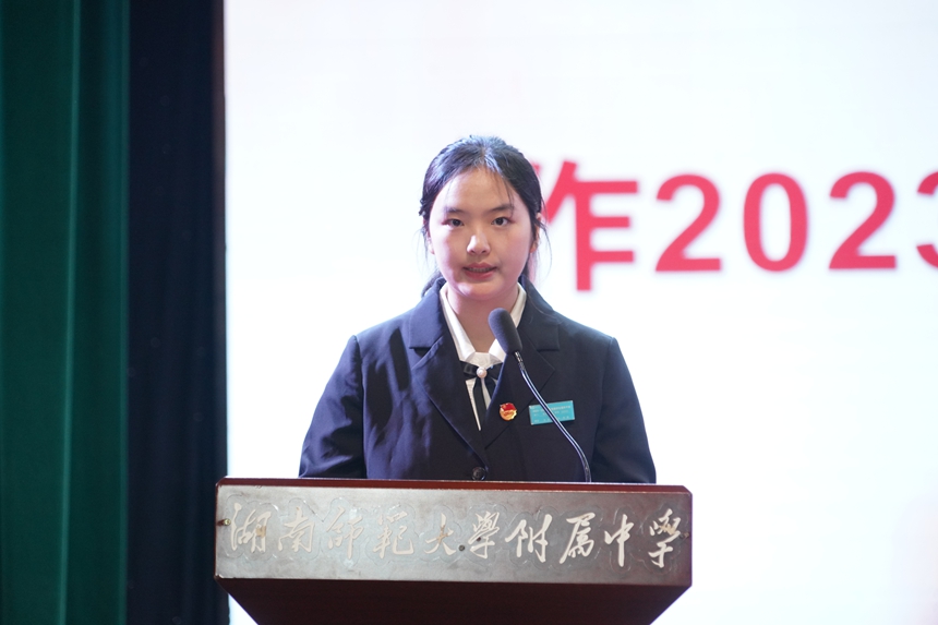 团委会学生副书记朱敏绮、学生会主席肖玥、学生纪律监察委员会书记段叶霖、学生社团联合会主席雷鑫凯分别代表四大学生组织向大会作了2023-2024年度工作报告,总结了过去一年来校级学生干部的成长与收获。