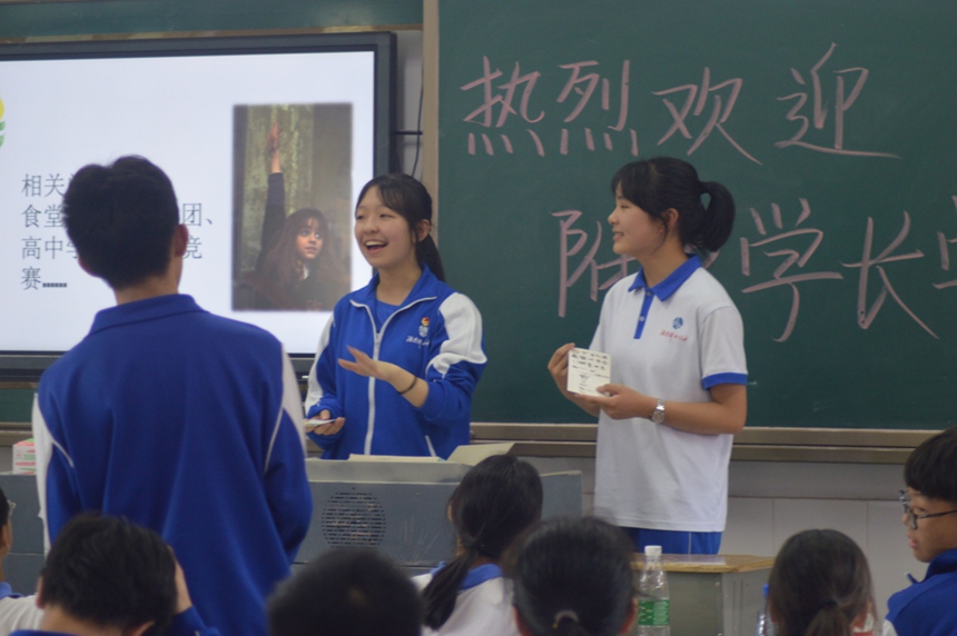 随后,大家根据安排有条不紊地进入各个班级进行宣讲。学校介绍、历史沿革、学科竞赛、校园特色无一不吸引着学弟学妹们。在中考之际,学长团的同学们向学弟学妹分享自己的中考经验,祝愿所有的努力都能有好的收获,中考必胜。