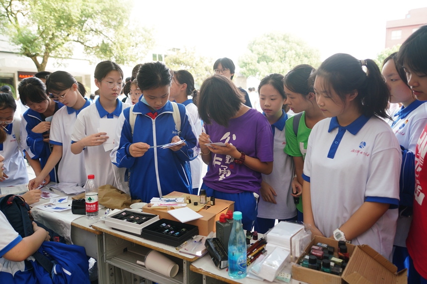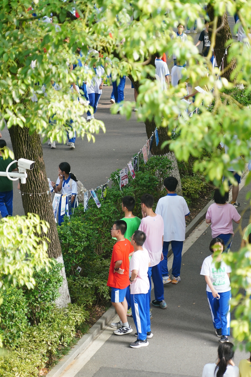 下午4时,招新活动正式开始,同学们热情高涨,积极性十足。招新现场,处处可见醒目的宣传海报,还有一些社团将生动鲜活的照片挂在墙上吸引眼球,令人目不暇接。社团的成员也纷纷拿出绝活吸引众多学生驻足观看,如汉文化社身着大唐服饰,回溯中华五千年历史;μc音乐社带来了激动人心的歌曲,少年意气风发,唱响青春乐曲;THEO街舞社带来的节目表演,张扬肆意,活力四射,舞出了附中人的阳光风采;pot推理社审思明辨,多谋善虑,运筹帷幄;吉他社和音乐社的现场弹唱、棋艺社的残局对弈、心理社的小游戏和高尔夫球社的现场体验等等,让现场充满了激情与活力。香樟之下,同学们都徜徉在艺术的海洋里,沉浸在美的世界中。