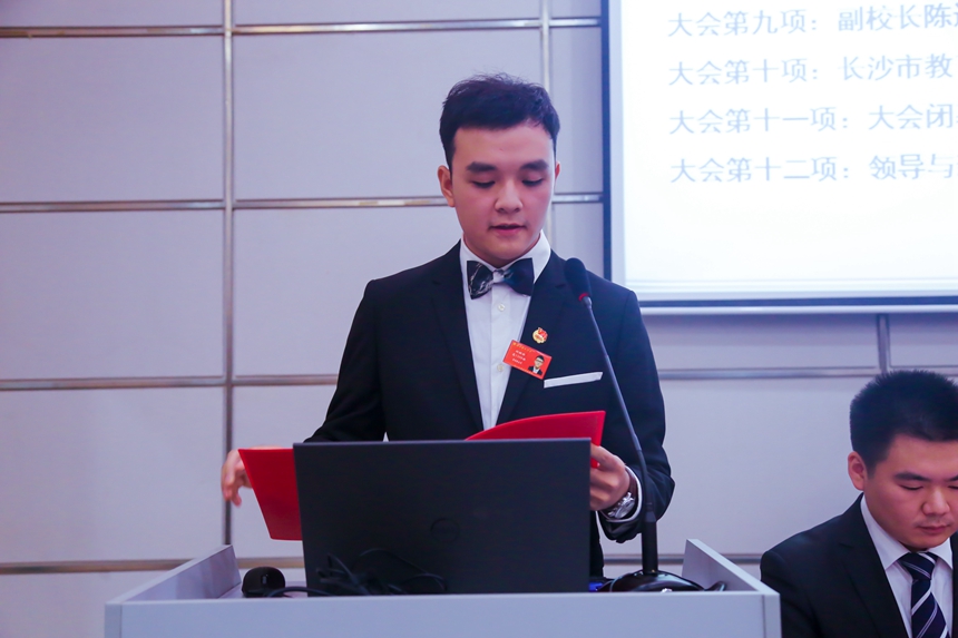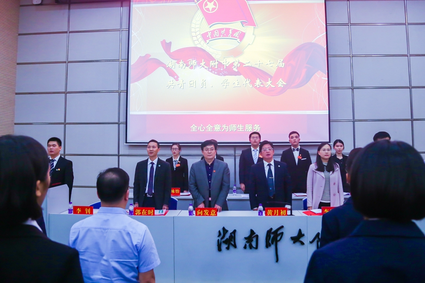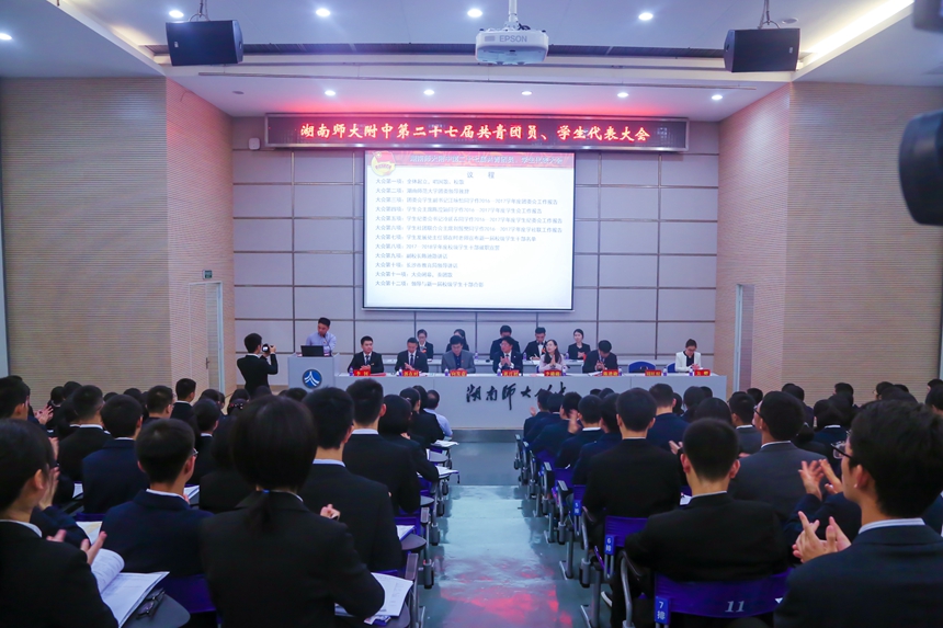 在中国共产党的十九大胜利召开之际,10月20日下午,我校第二十七届共青团员、学生代表大会在科学楼会议厅隆重召开。长沙市教育局学生工作处副处长、团委书记李璐璐,湖南师范大学学生工作部部长向发意、团委副书记周旺蛟莅临大会。副校长黄月初、陈迪勋,学生发展处主任郭在时、副主任吴卿,各年级组长以及300多名代表出席大会。本次大会由团委书记李钊主持。