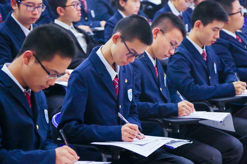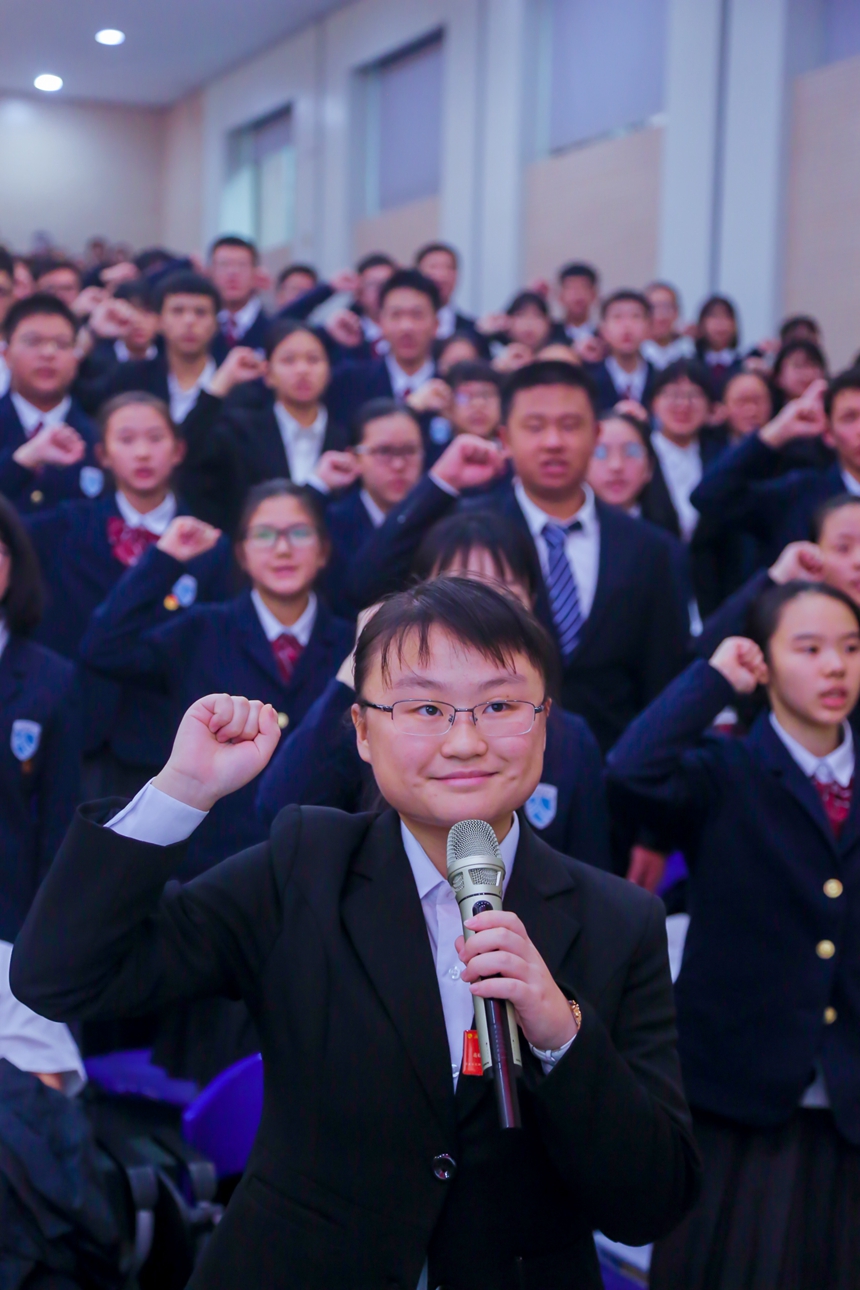 随后,郭在时宣布新一届校级学生干部名单。2017-2018学年度校级学生干部就职宣誓,由新一届学生会主席禹湘领誓,表示将忠诚履职、勇于担当,积极为我校建设“卓越高中”的发展目标贡献自己的青春与智慧。