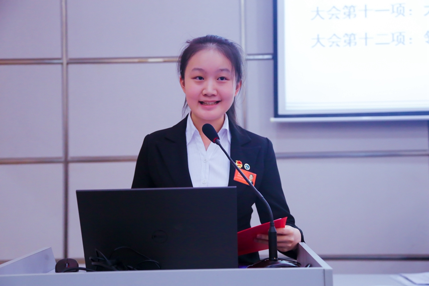 随后现任团委会学生副书记汪咏怡、学生会主席陈滢颖、学生纪委会书记冷延春、学生社团联合会主席刘懿樊分别作2016-2017学年度团委会、学生会、学生纪律监察委员会、学生社团联合会工作报告,报告中展现了四大学生组织在过去一年中的收获与成长,与此同时也表明了组织现今存在的不足以及日后的发展方向,并激励新一届干部承前启后,革故鼎新,精益求精,筑梦新征程。