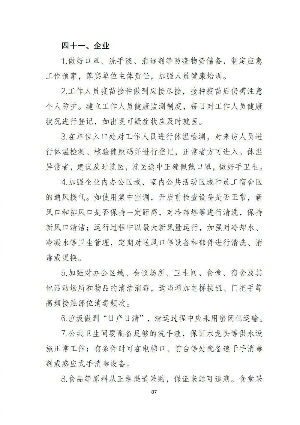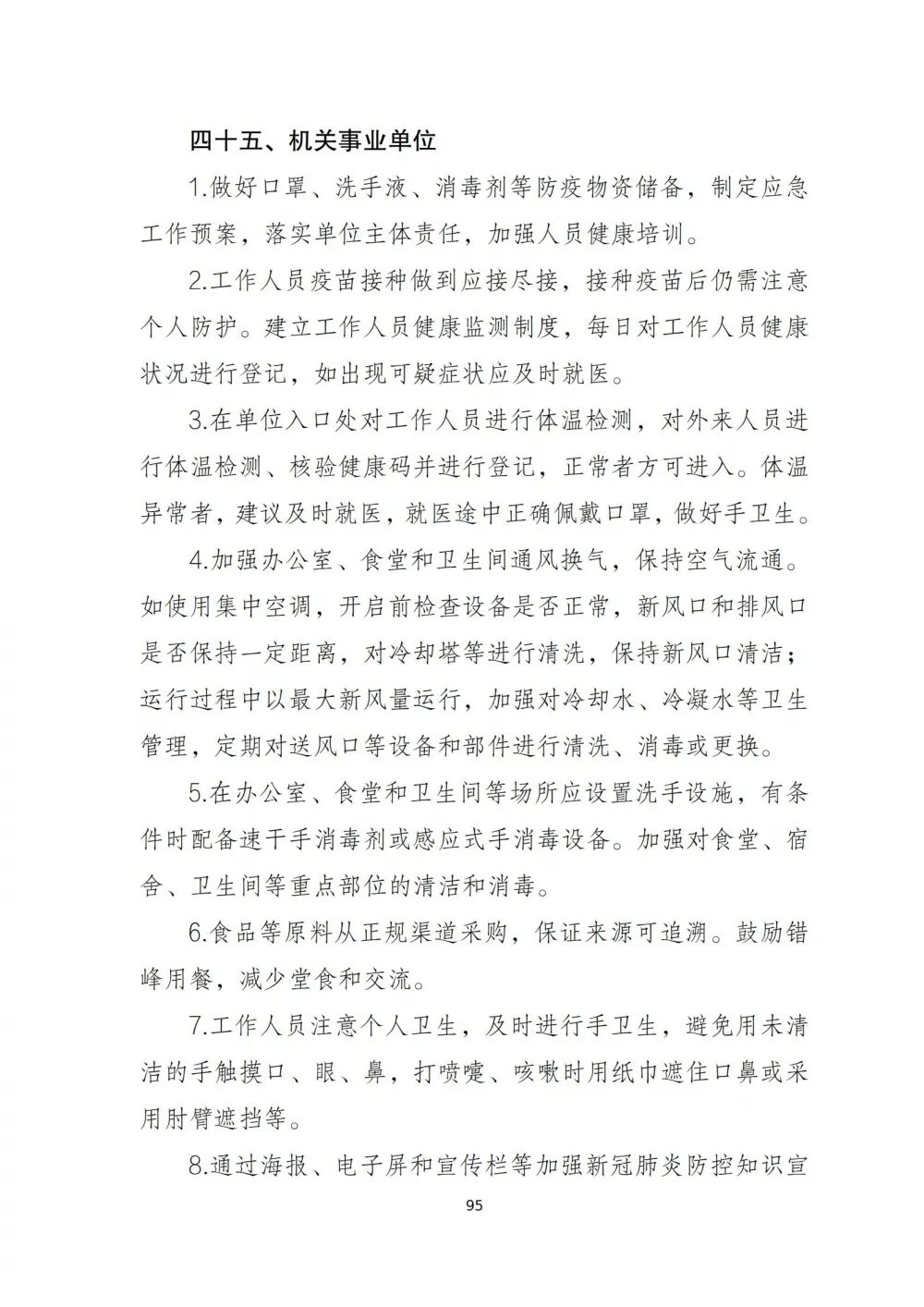 根据当前疫情形势,对所涉及的重点场所和重点单位进一步强调落实主体责任,坚持“人、物、环境同防”“闭环管理”,强化了健康监测、疫苗接种、核酸检测、清洁消毒和应急处置等措施要求。对所涉及的重点人群,加强相关行业职业人员,特别是一线职业人员严格执行戴口罩、疫苗接种、消毒等防护要求,确保各项防控措施落实到位。
