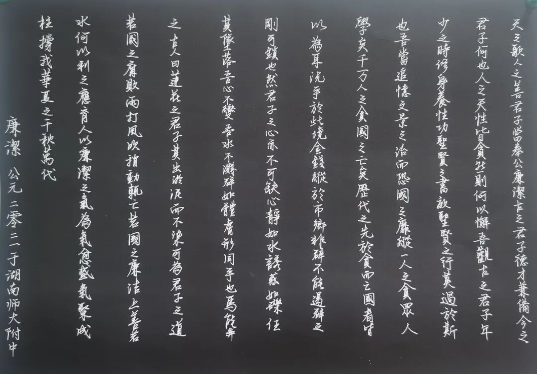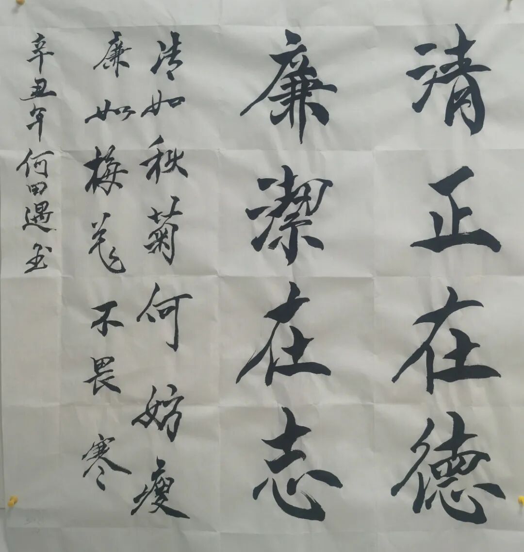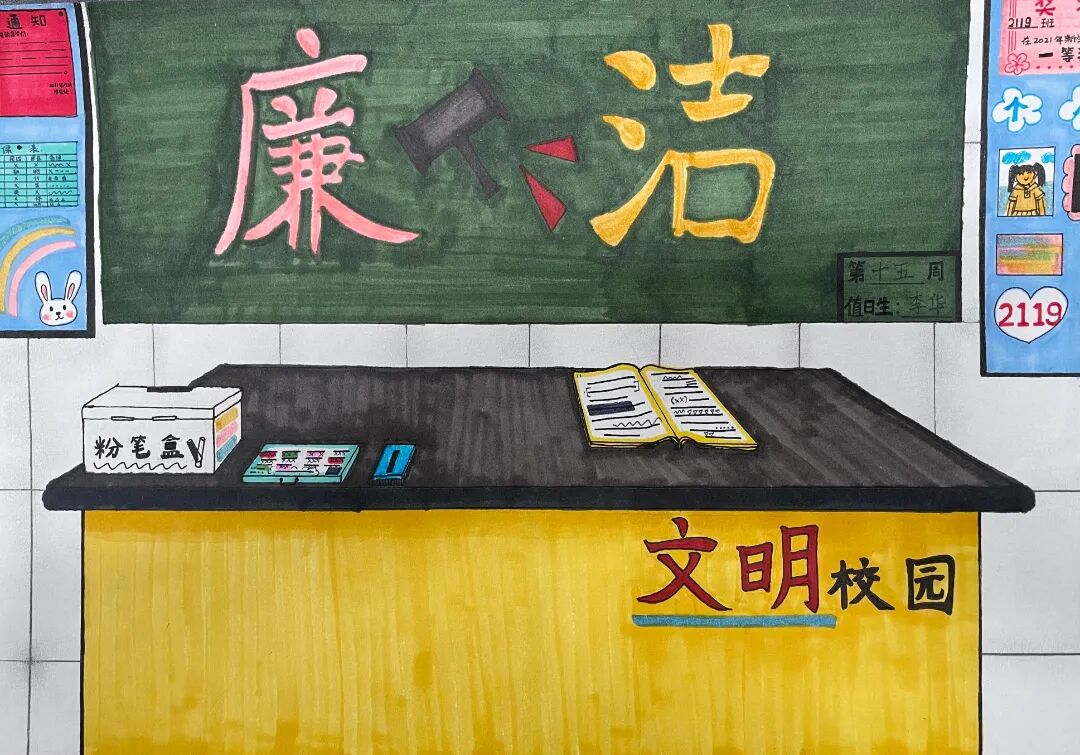 全校师生积极参加清廉校园文化的创建,用书法、绘画、剪纸等多种形式,创作出一幅幅颂扬廉洁、鞭挞腐败、寓意深刻、雅俗共赏的作品。