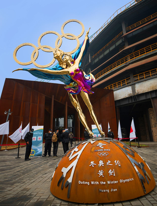 2022年北京冬奥会大型七彩金动态雕塑《冬奥之梦》表现了飘舞的彩带、飞扬的炫舞、缠绵的舞者......交织成热烈而浪漫的冬奥之梦。