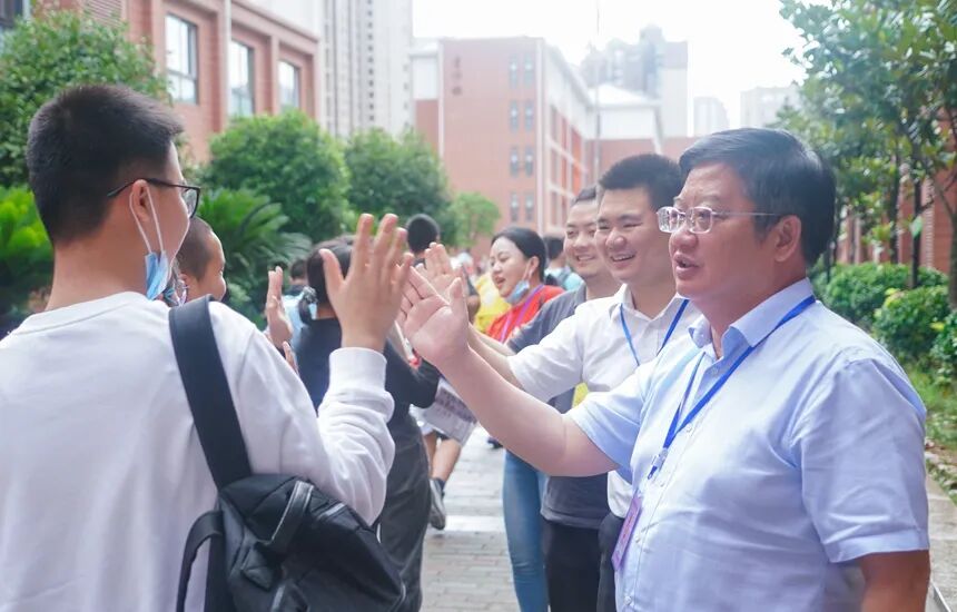6月20日,2022年长沙市生地会考正式开考。作为湖南师大附中恢复初中办学以来的首届学生,八年级的同学们从容赴考。湖南师大附中党委书记黄月初带队送考,为大家加油助威。