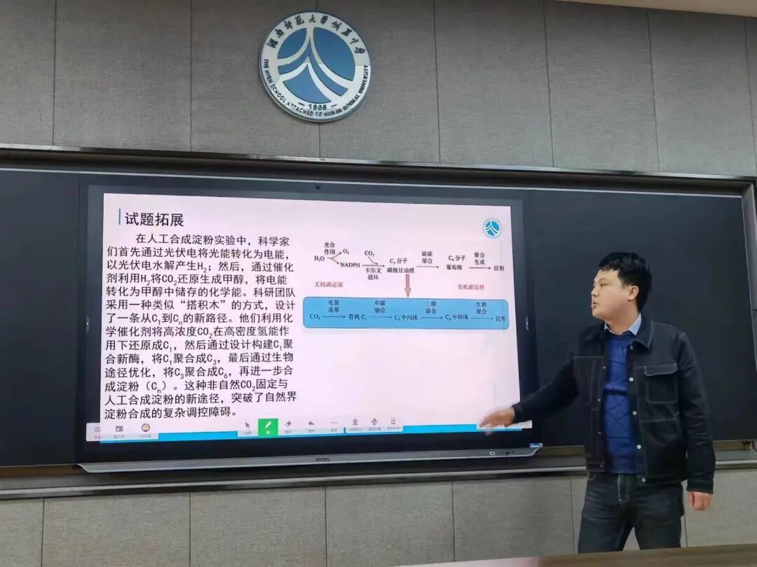 田静乐老师以“基于真实科研情境,评价学生核心素养”为主题,选取2021年山东高考题第23题展开说题,从试题立意、试题解法、试题拓展、试题变式、试题启示五个方面展开。强调真实科研情境在目前试题中的重要性。分析学生错因,由近年来命题者青睐于以科学研究前沿作为情境素材引发思考,提出要注重学生在真实情境中解决问题的能力培养;淡化机械记忆,引导学生重视积累,回归基础、回归学科本质;要关注分子机制、作用机理的练习及长句表达技巧训练。