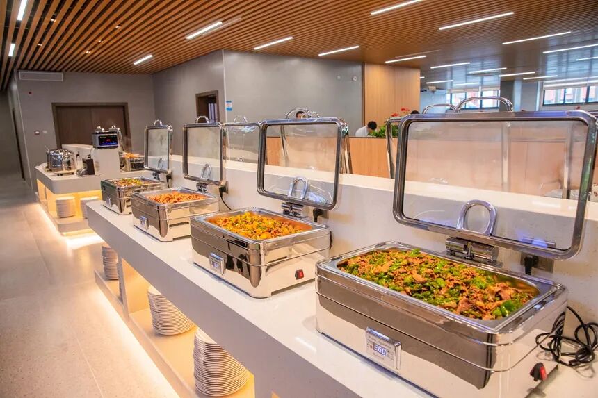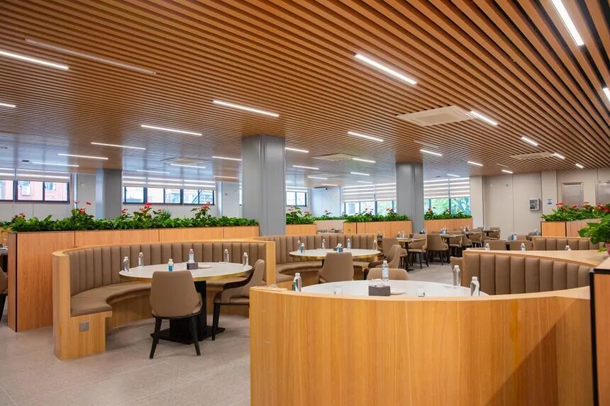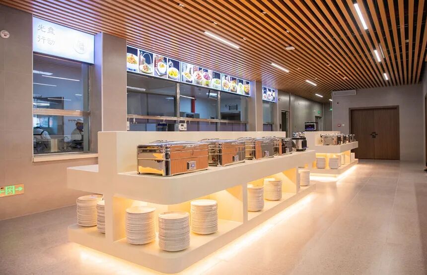 为方便教职工用餐,餐厅分为四人位、十人位和儿童位,不仅为教职工聚餐提供场地,也贴心地为“附二代”教职工子弟们准备了专属区。