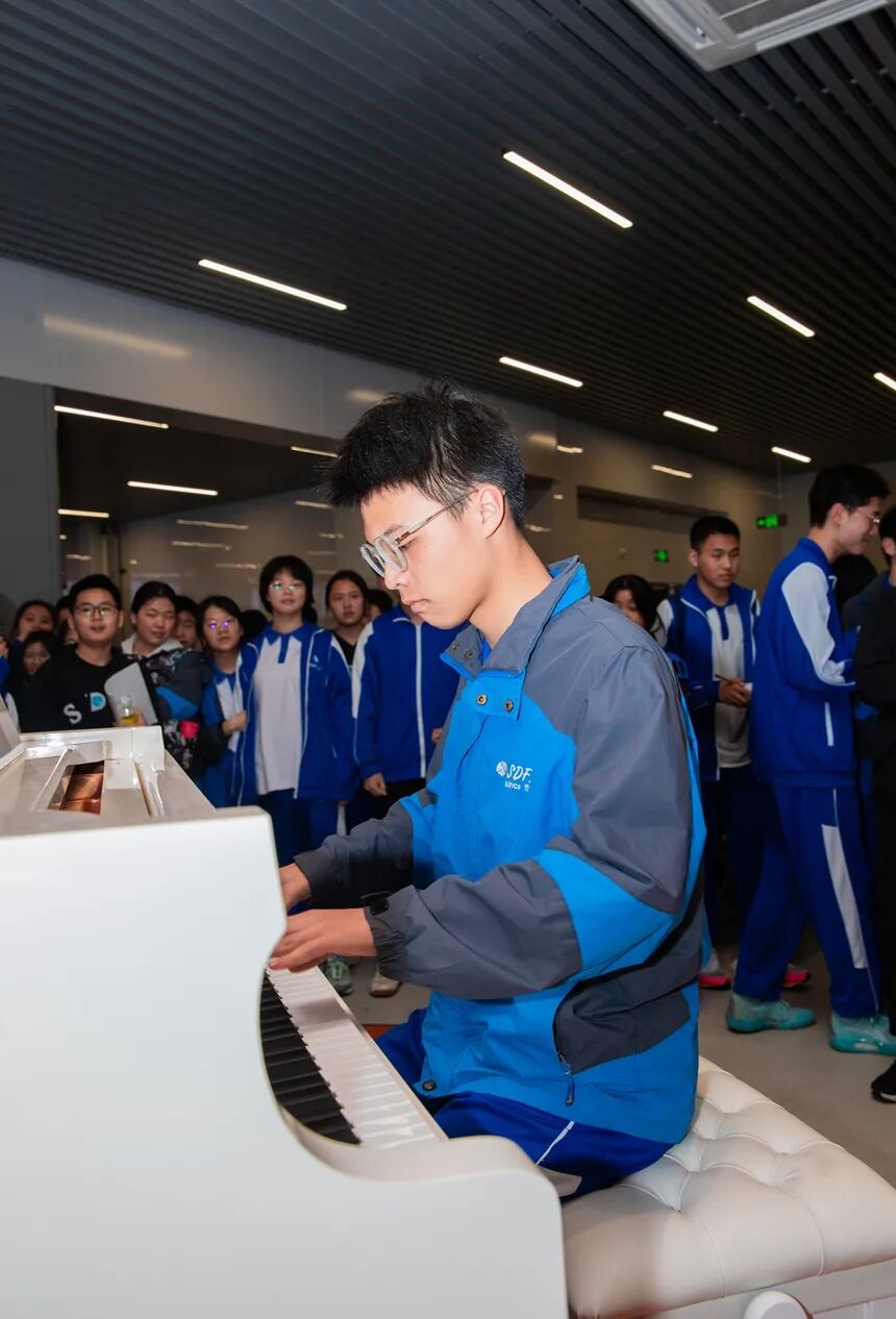 在小桃园食堂,大家惊喜地发现,不仅内部装饰全新升级,座位增加,而且餐厅中间多了一架白色的三角钢琴,吸引着前来就餐的师生现场弹奏。