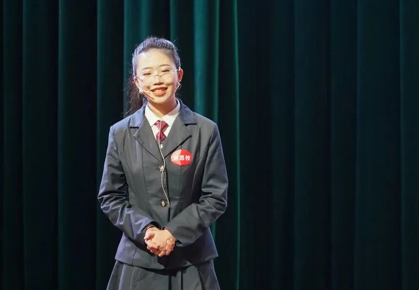 选手依据指定材料,并进行理解与适当处理,设计成广播电视栏目等形式,以主持人身份用口语主持播出。初中组的徐义凯、郑相宜、陈之谦分别选取禹之谟铜像、之谟图书馆、攀登广场等进行介绍,讲述了附中每一处都是历史与文化的积淀,每一处都蕴含着教育智慧的精巧设计。高中组每位选手依次在现场选取题目序号,根据关键词进行了一段即兴模拟主持。