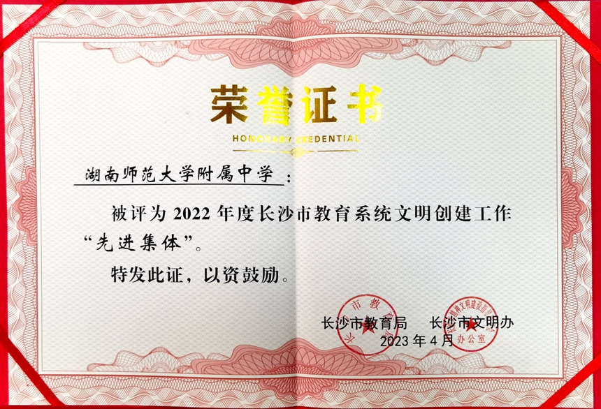 我校荣获2022年度长沙市教育系统文明创建工作先进集体