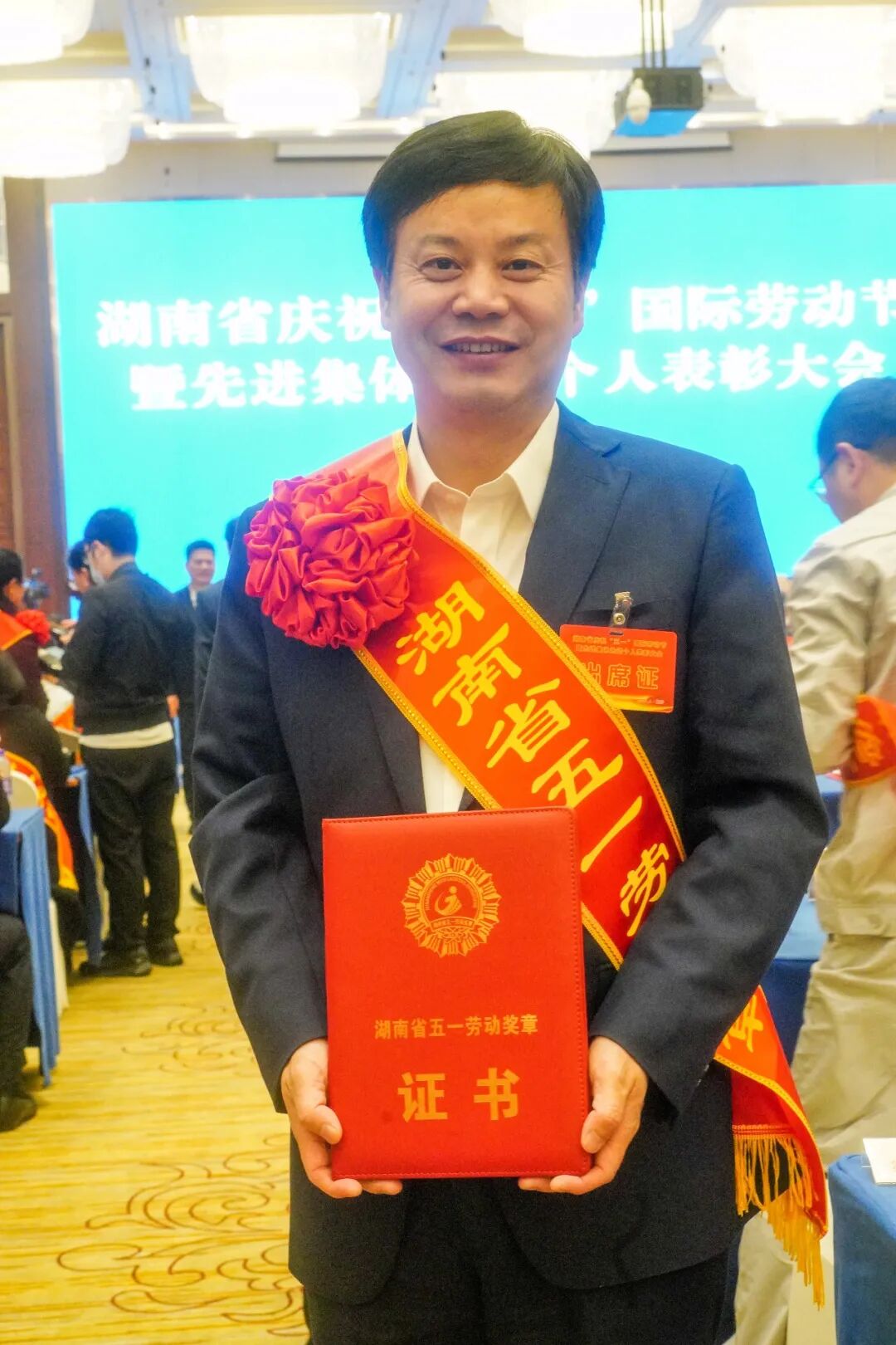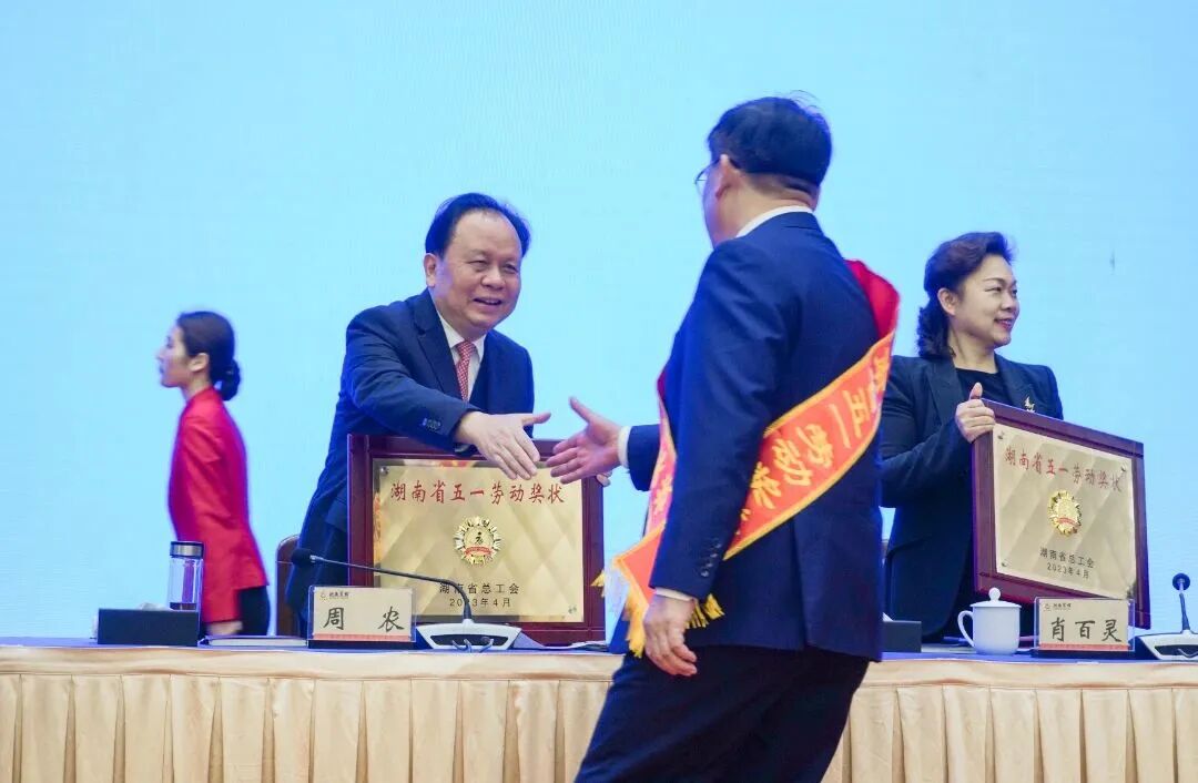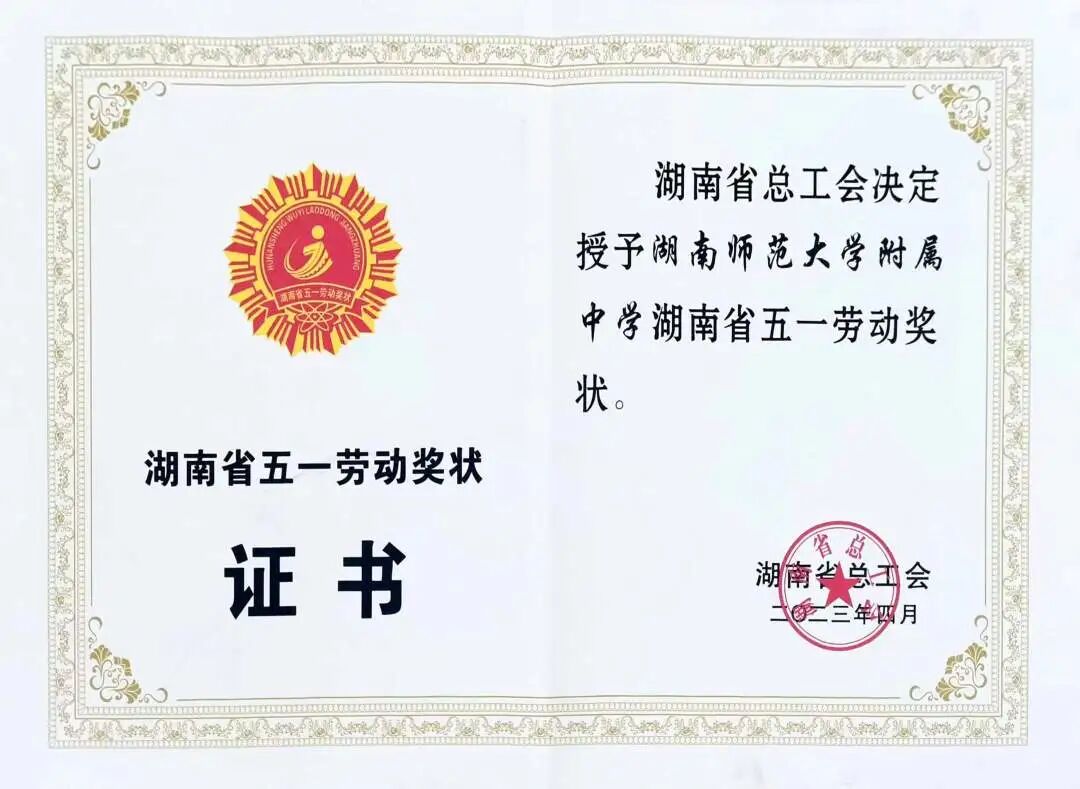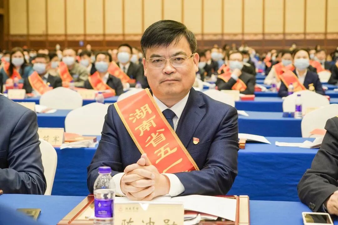 湖南师大附中荣获湖南省“五⼀劳动奖状”,副校长、工会主席陈迪勋代表学校领奖。