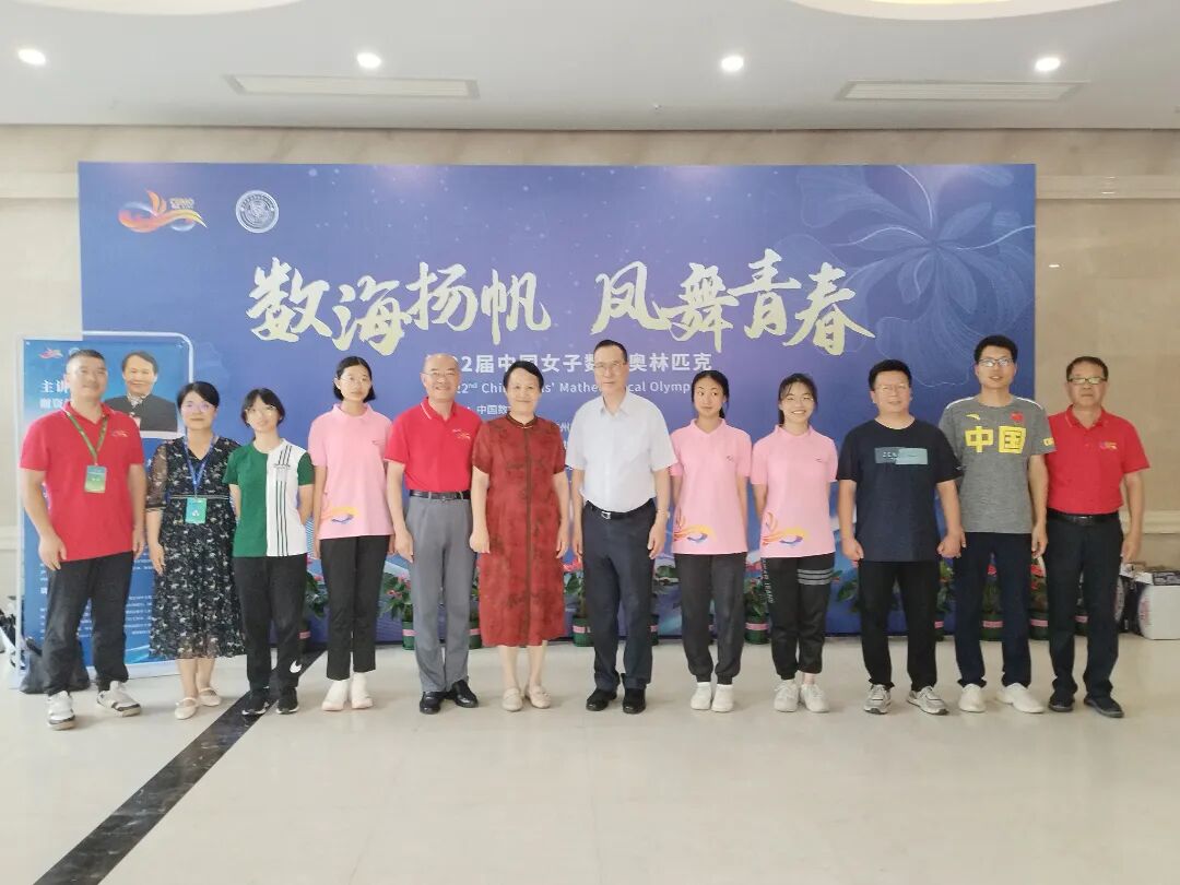 湖南女奥代表队、各主教练、湖南领队与数学竞委会领导合影(右五为郭家怡同学)