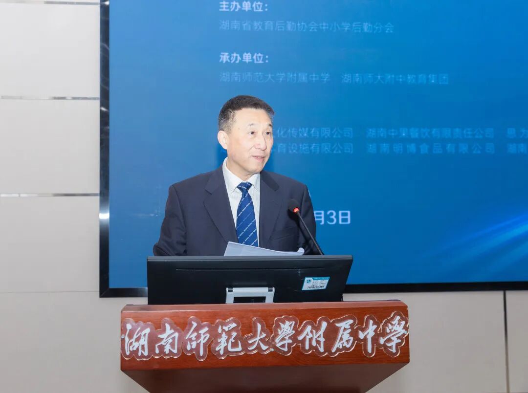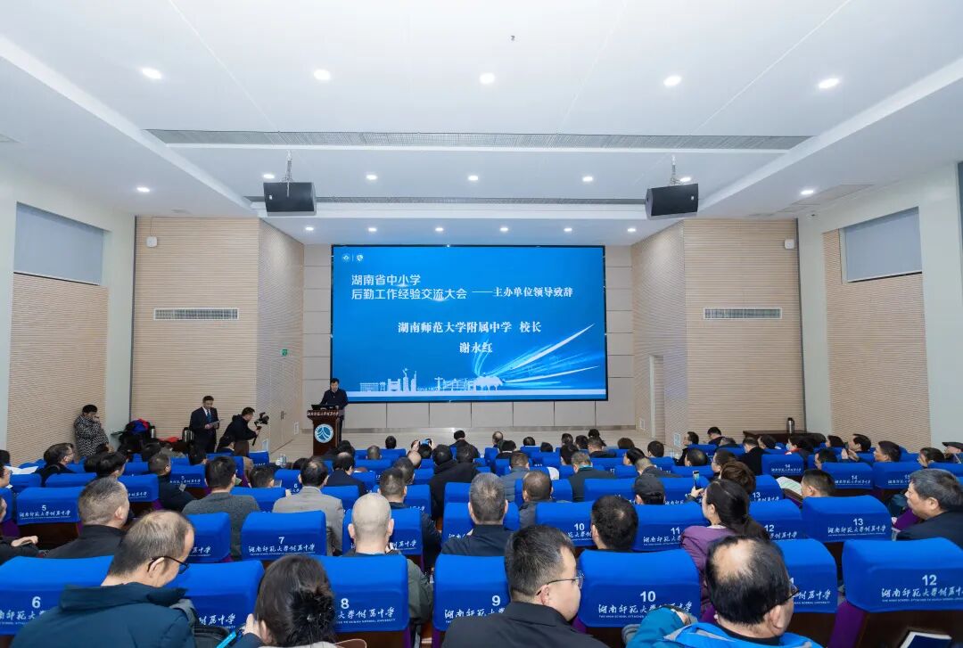 12月3日,湖南省中小学后勤工作经验交流大会在湖南师大附中举行,教育部关工委副主任兼秘书长,中国教育后勤协会中小学后勤分会名誉理事长张文忠,湖南省委教育工委副书记、省教育厅党组成员、湖南省教育厅关工委主任、一级巡视员王建华,湖南省教育厅二级巡视员喻志松,湖南省教育后勤协会会长杨定忠,中国教育后勤协会中小学后勤分会常务副秘书长刘强,湖南省教育厅财建处处长黄星亮,长沙市教育局副局长谢小红,我校校长谢永红、党委书记黄月初、副校长陈迪勋、党委委员李智敏等领导、嘉宾出席。教育部关工委、湖南省教育厅有关领导,中国教育后勤协会中小学后勤分会、湖南省教育后勤协会领导,各地教育行政部门及后勤管理单位领导,中小学后勤分会会员单位等近400人参会。