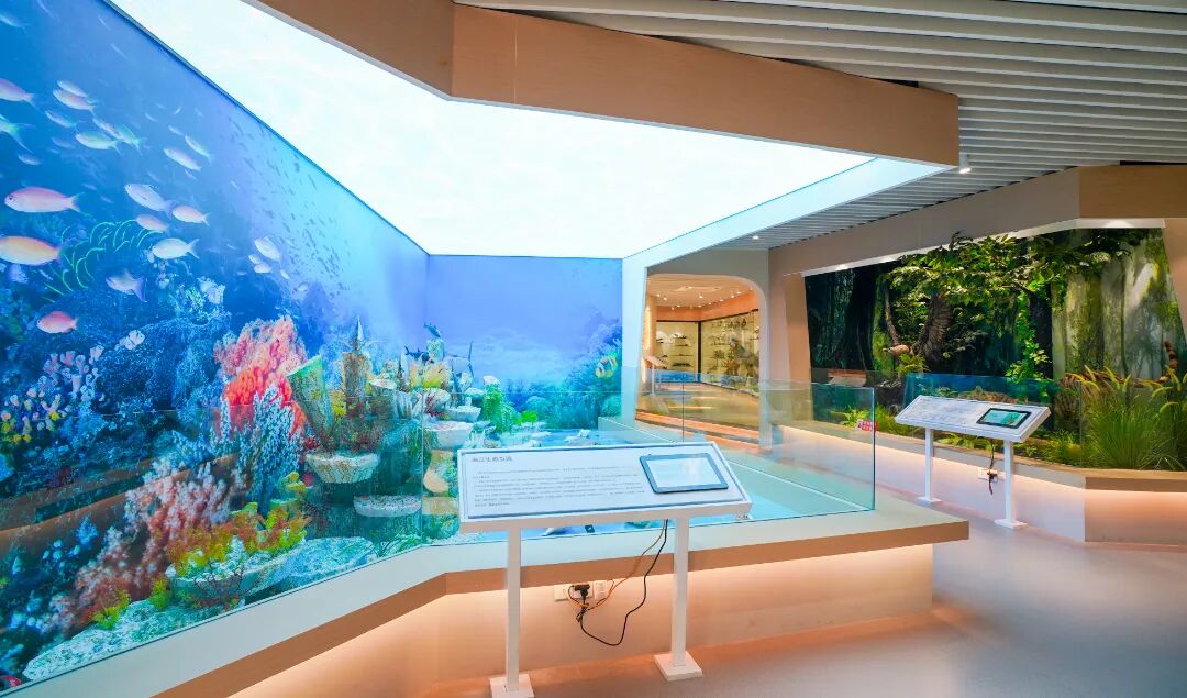 为了给参观者沉浸式观赏体验,该标本馆还融入了许多科技元素。例如,当参观者来到“森林生态系统”展区时,场景感应器能迅速感应到,随后模拟发出在这个展区动物的叫声。再如,来到“海洋生态系统”展区时,就会听到海浪的声音。参观时,如果参观者对某一类物种感兴趣,可以点击摆放在每个展区旁边的数码查询台,获取更多权威信息。