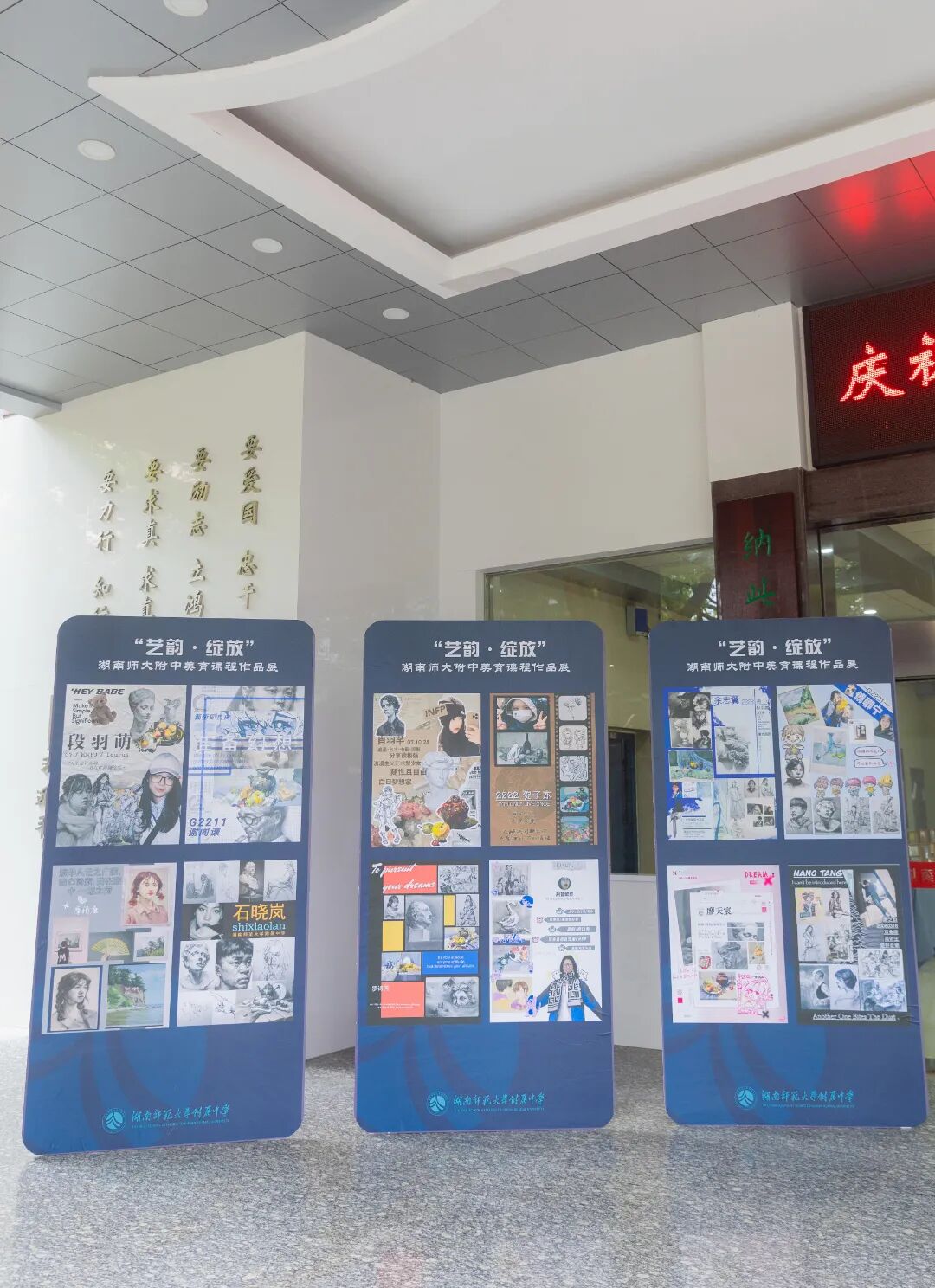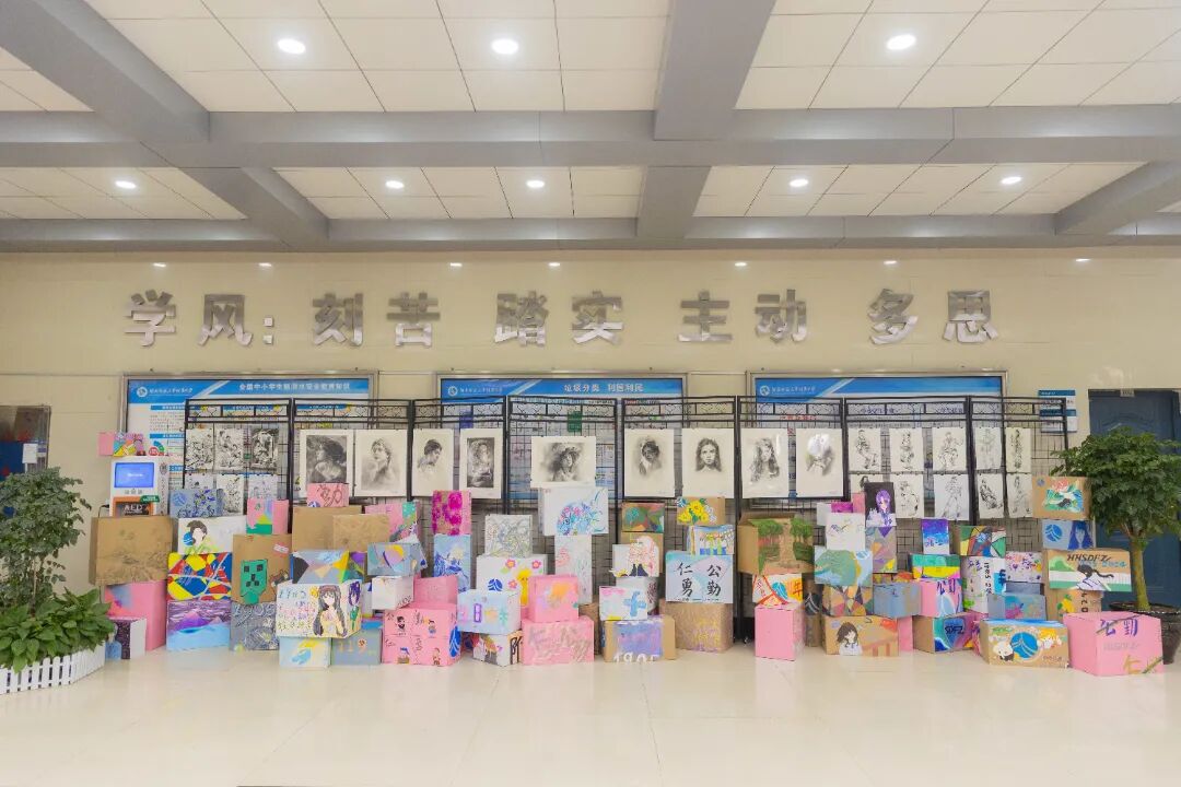 校庆日当天,“艺韵•绽放”美育课程学生作品展正式开展,为校庆献礼。