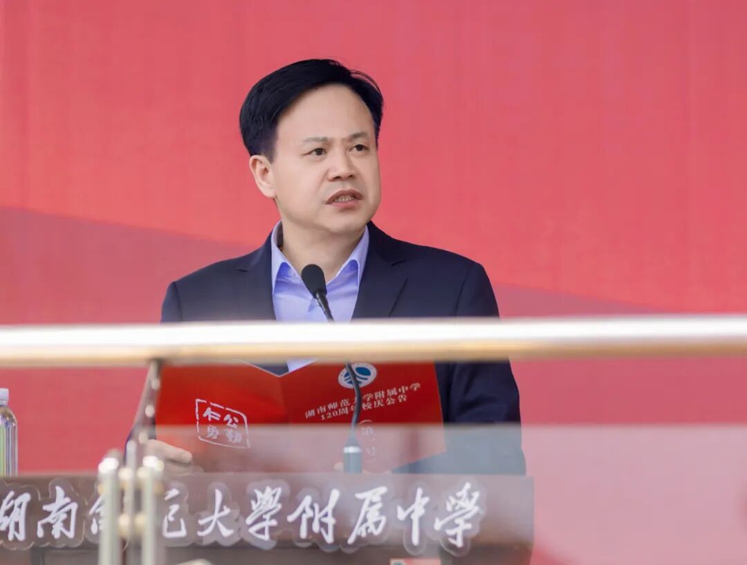 党委书记谢永红宣读《湖南师范大学附属中学 120 周年校庆公告(第一号)》。