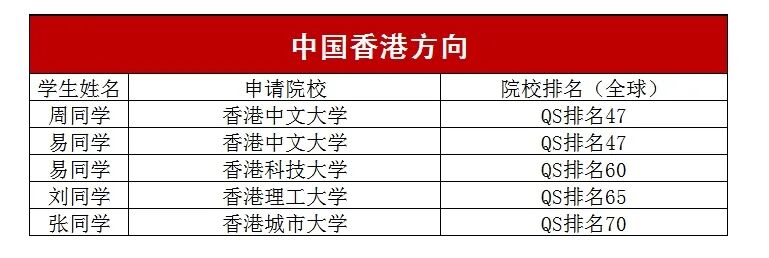 中国香港方向:斩获2份香港中文大学offer,香港科技大学、香港理工大学、香港城市大学offer各1份!