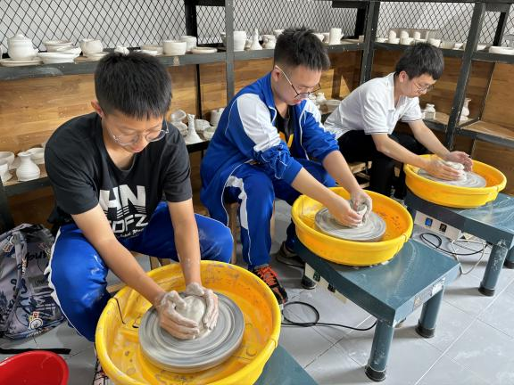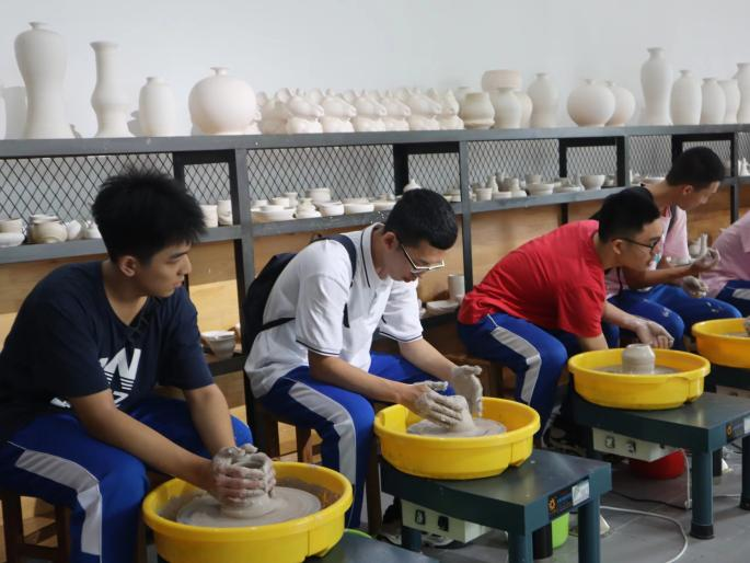 第一天,同学们来到醴陵窑,聆听大师讲座,参观考古发现现场和古窑厂,了解醴陵陶瓷产业兴起的发端,溯本求源。第二天上午,同学们参观醴陵陶瓷博物馆,通晓陶瓷的前世今生,一览近代醴陵瓷的辉煌;再走入渌江书院,切身体悟古代文人的闲情雅致。下午则走进了艺术瓷企业,参观艺术瓷生产线,并进行了岗位工作体验(拉坯)。第三天白天继续在艺术瓷企业进行岗位工作体验,进一步完成勾线与汾水,并领略了瓷城风韵。第四天参观工业瓷生产线,打卡醴陵网红捡瓷免费陶瓷带回家活动。