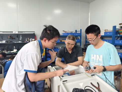 在工厂专业师傅的指导下,同学们亲自体验了光电产品的制造过程,包括从原材料的加工到最终产品的组装,深度体验了先进的生产技术和管理模式。课程中,同学们不仅仅是观摩,还积极与公司的管理人员、专业师傅进行交流,深入探讨了工程设计、质量控制等方面的实际问题。通过这次实地参观,同学们不仅增长了专业知识,还有效提升了团队合作和解决问题的能力。