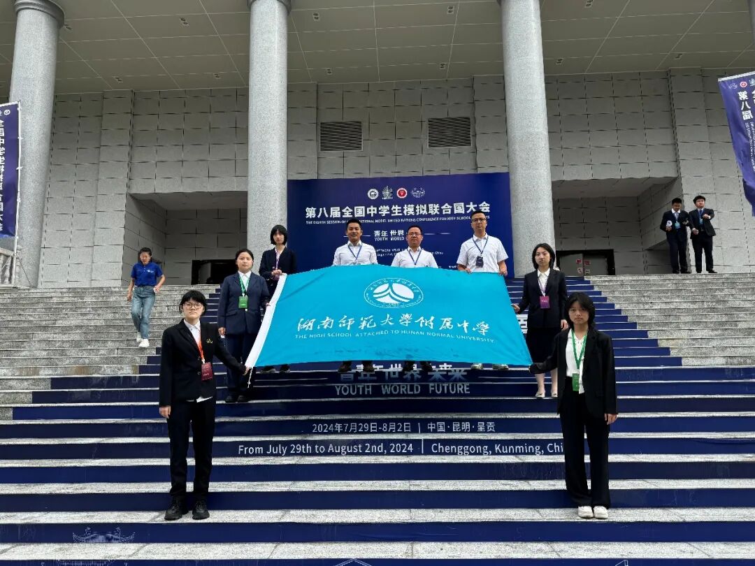 7月29日至8月2日,湖南师大附中尹芙希、李佩瑾、伍玥、杨景行、陈张妤婕五位同学参加第八届全国中学生模拟联合国大会。他们全部以英文作为工作语言,围绕不同的国际议题分别参加不同委员会的会议,通过沟通合作,积极磋商,致力于解决各自会场提出的问题。与会前,各位代表积极了解委员会议题以及所代表国家及主体的情。会议中,各位代表展示出良好的外交礼仪和杰出的团队合作能力。会议后,各位代表总结和反思如何推动会议进程、推动问题解决。这充分展示了附中学子敢于担当、善于作为的优秀品质,积极践行“成民族复兴之大器,做人类进步之先锋”的追求。本次全国中学生模拟联合国大会我校获多个奖项:“最佳组织奖”,尹芙希获“最佳外交风采”(Best Diplomacy),李佩瑾、杨景行两位学生获“荣誉提名”(Honorable Mention)。
