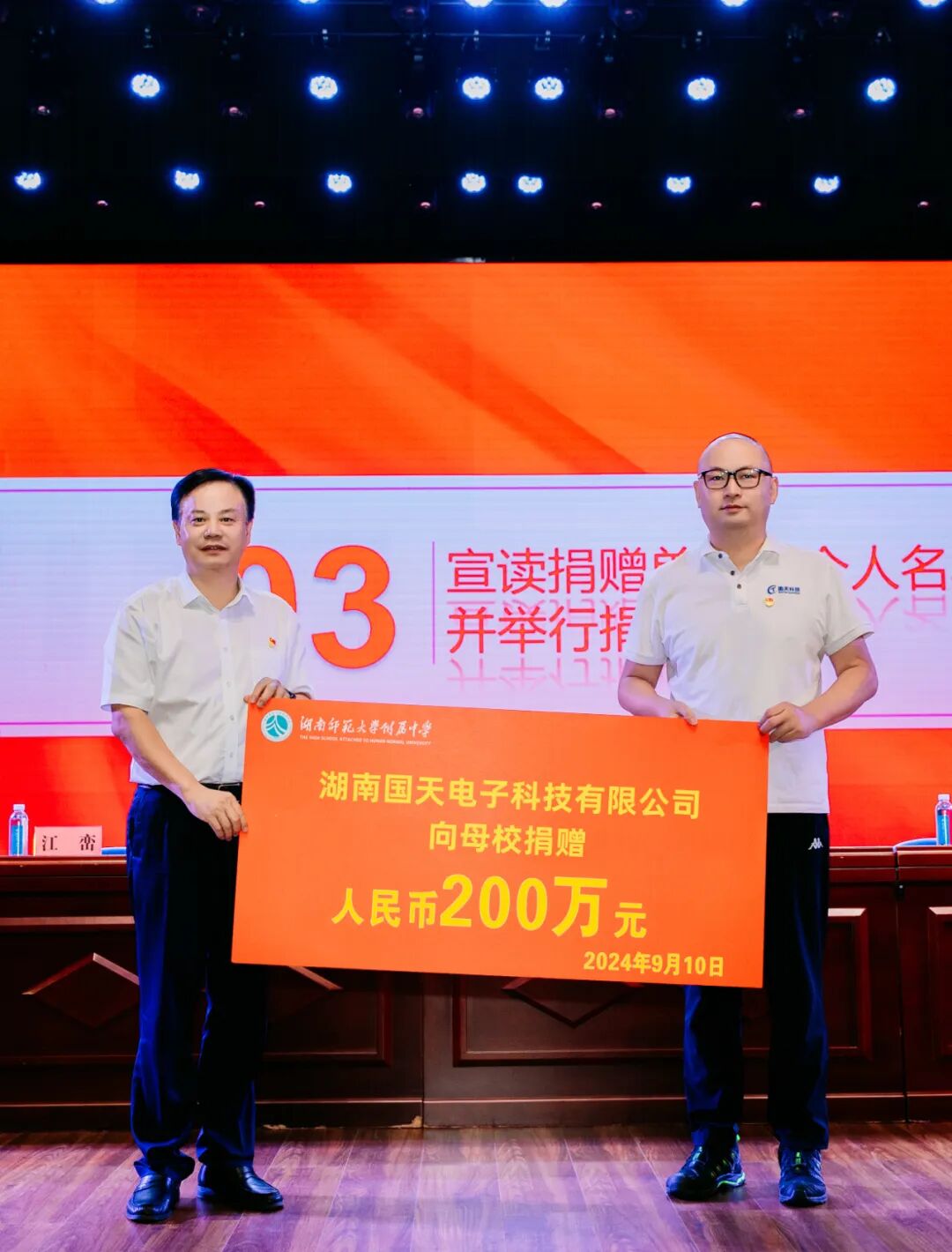 高98届杰出校友、湖南国天电子科技有限公司董事长江峦为母校捐赠人民币200万元。湖南师范大学、湖南顺辉建筑劳务有限公司、原湖南人民出版社总编熊治祁先生等单位、公司和个人参与捐赠。