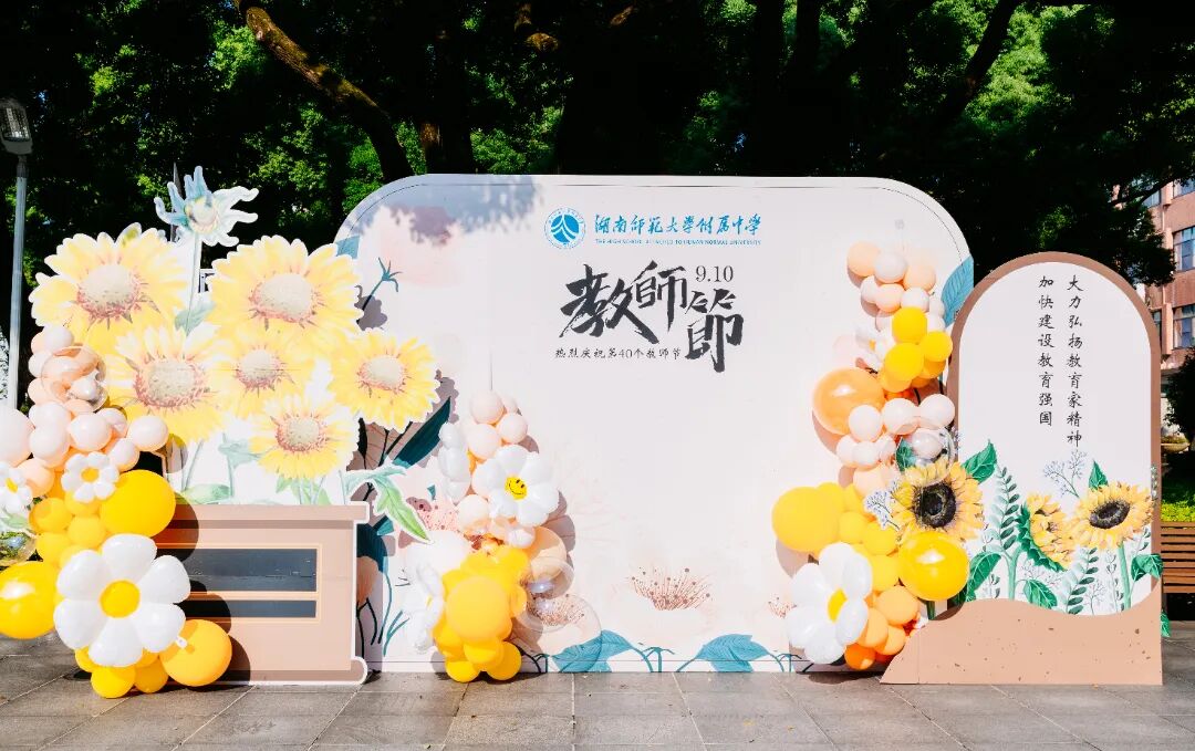 9月10日,湖南师范大学附属中学举行庆祝第40个教师节系列活动。上午,全校教职工及离退休教师齐聚校园,学校领导送上节日祝福,共同欢度节日。