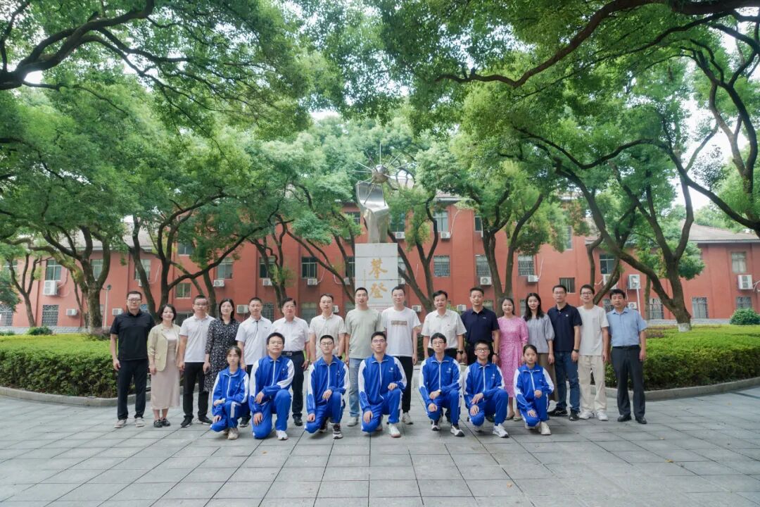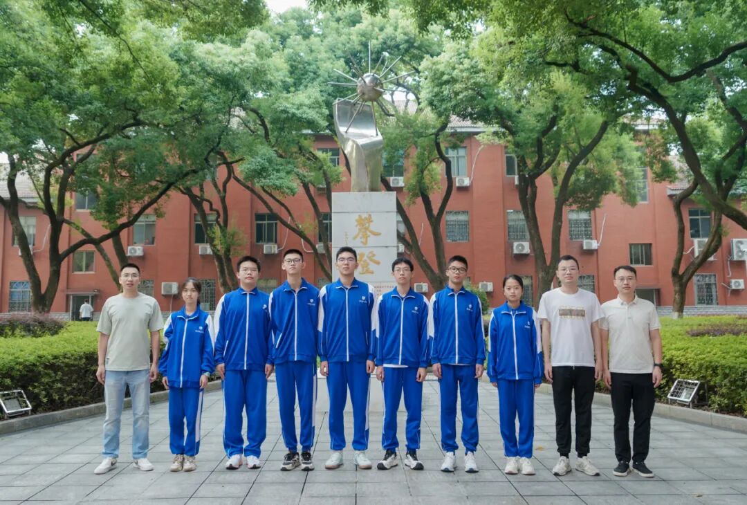 入选省队学子同学与校领导、教练、班主任合影