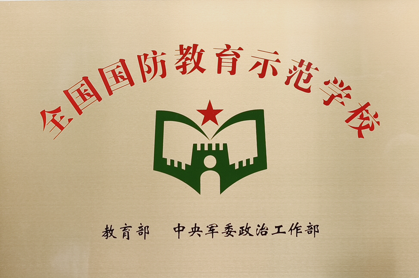 继获评“国防教育特色学校”“首批国防特色教育示范学校”后,今年我校又被教育部、中央军委政治工作部授予“全国国防教育示范学校”称号。