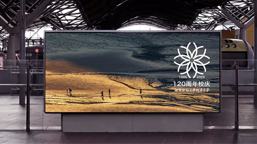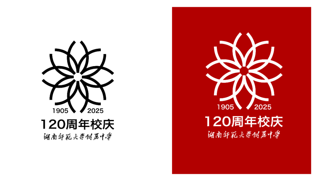 120校庆标识,以“人”字为基本设计元素,以“聚散”为基本设计理念,以“八瓣花”为基本构图美学,辅之以建校之年与庆祝之年,形成120周年校庆整体标识。以“人”字为基本设计元素。教育的根本任务是立德树人,附中的使命是培养“成民族复兴之大器”的人,师大附中校徽的元素就是一个人字。以人为本,兼容并蓄是附中的办学理念。标识凸显“人”字,是对附中理念的核心表达。以聚散为基本设计理念。校庆是校友的节日,校友是校庆的主体。师大附中120年办学历程中,以长沙为主体办学,抗战时期,迁址办学,先望城,再常宁,后蓝山,弦歌不辍,120年中,先后八万多学子从三湘四水来,到五湖四海去,聚是一团火,散作满天星!标识以聚散为设计理念,是对校庆的深刻理解。以八瓣花为基本构图美学。中国传统美学讲究结构稳定,布局严谨,色彩和谐,又深含意蕴。八个人字朝向八个方位,组成八瓣花的形状,非常符合中国传统美学。同时八瓣花寓意坚韧不拔,追求美好,恰当好处地概括了师大附中前50年自强不息,后70年从优秀走向卓越的办学历程。