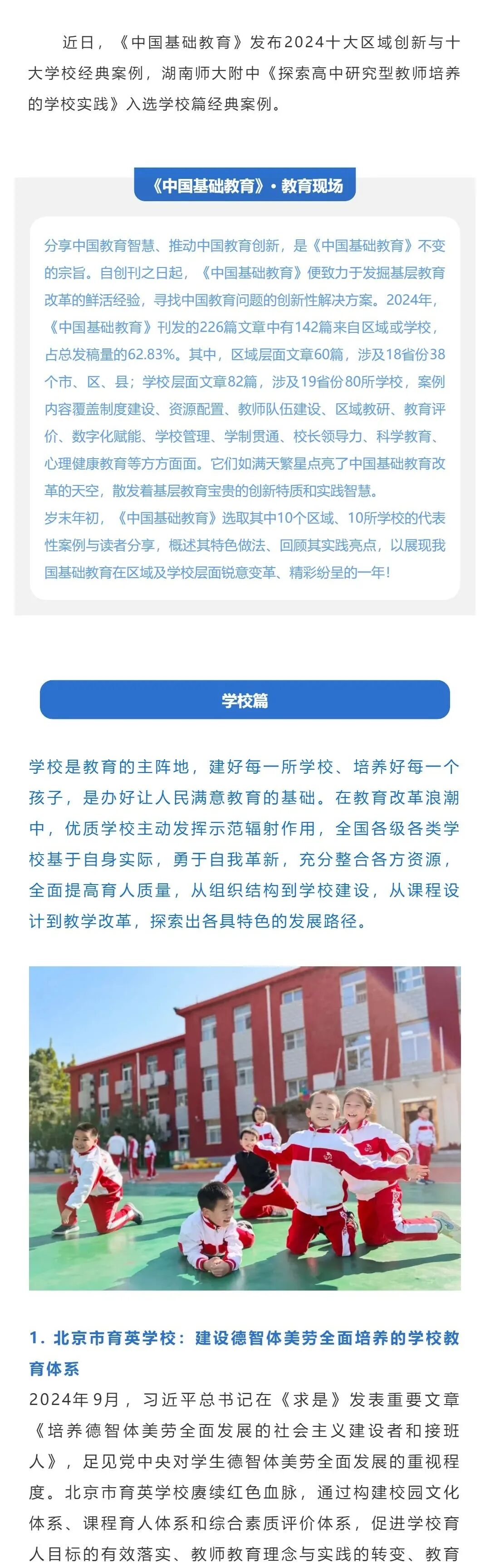 我校入选《中国基础教育》2024十大区域创新与十大学校经典案例