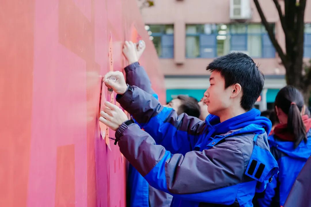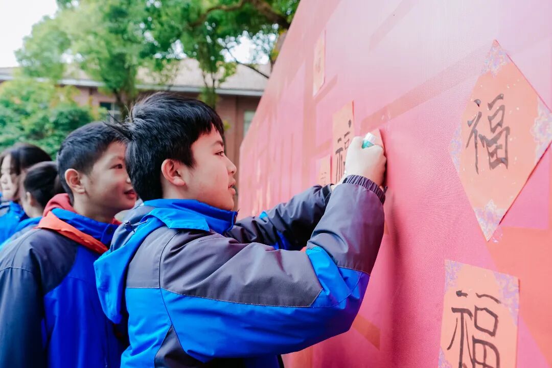 活动现场,师生们欢聚一堂,共同挥毫泼墨,书写福字,并将这些满载祝福的福字张贴于攀登广场,传递出对新学期的美好期待和无限憧憬。