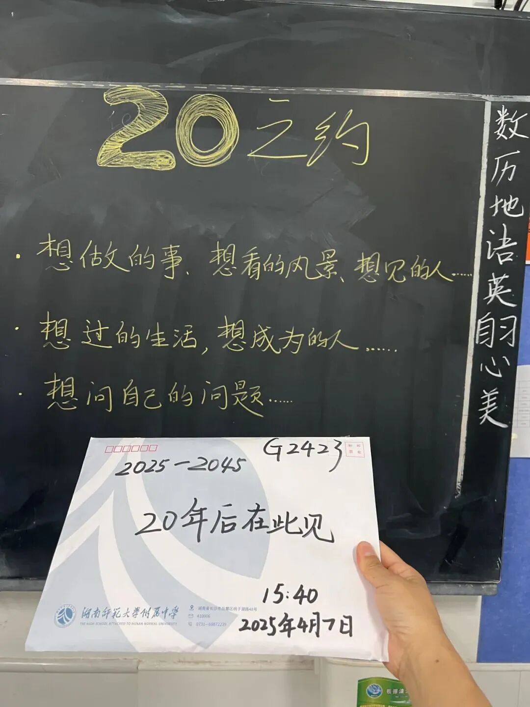 “当教室的钟摆划过3650个日夜,我们终于等到了约定的重逢时刻。”4月12日,湖南师大附中120岁生日这一天,2014级毕业生们回到母校,拆开了十年前亲手封存的“梦想清单”。年少的你啊,好久不见。