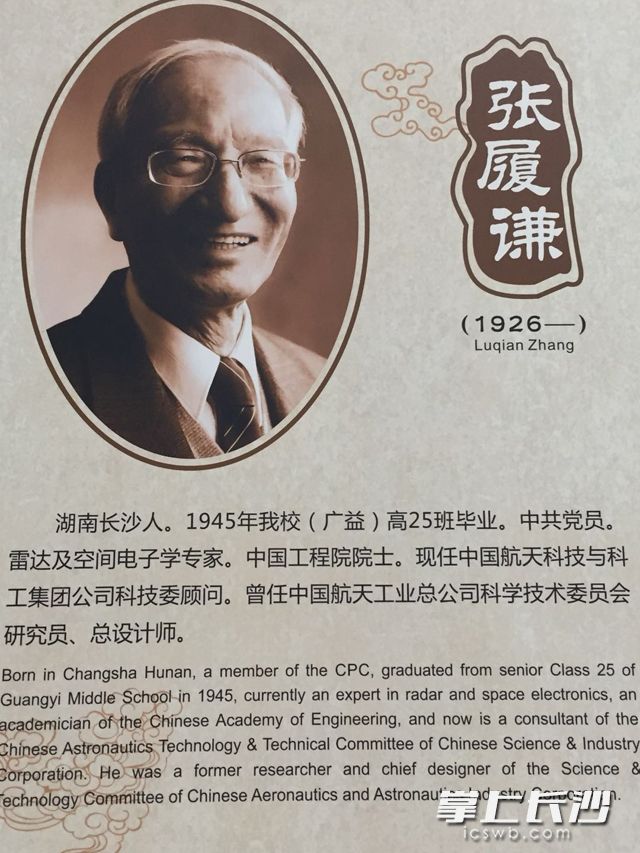 湖南师大附中在办学113的历史中,培养多名杰出校友。图为中国工程院院士张履谦