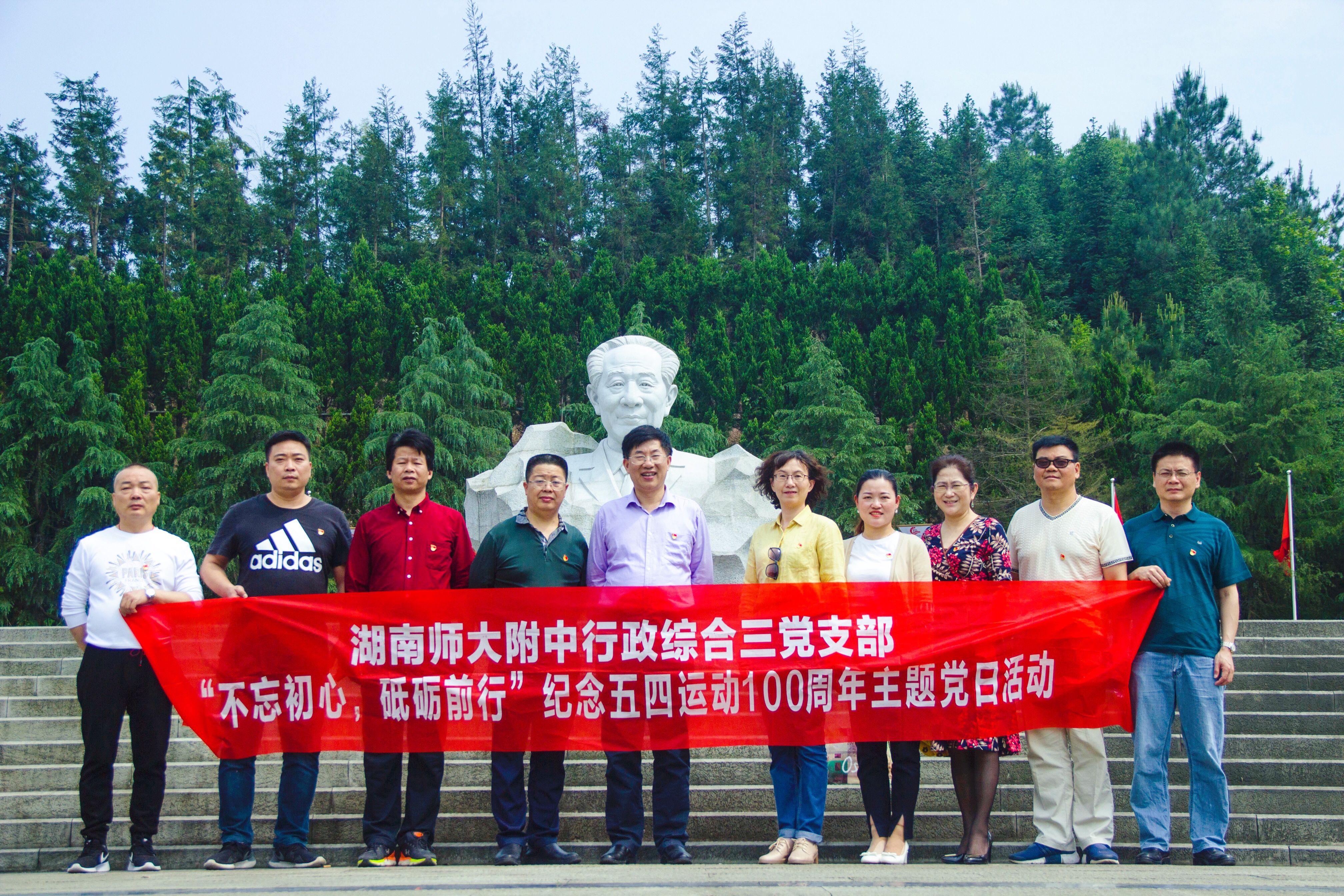 为纪念五四运动100周年,全面推进党支部的组织建设, 5月11-12日,在党委委员、副校长罗培基和支部书记李文昭的带领下,行政综合三党支部11人前往革命老区浏阳市秋收起义文家市会师旧址、胡耀邦故居开展“不忘初心、砥砺前行”主题党日活动。