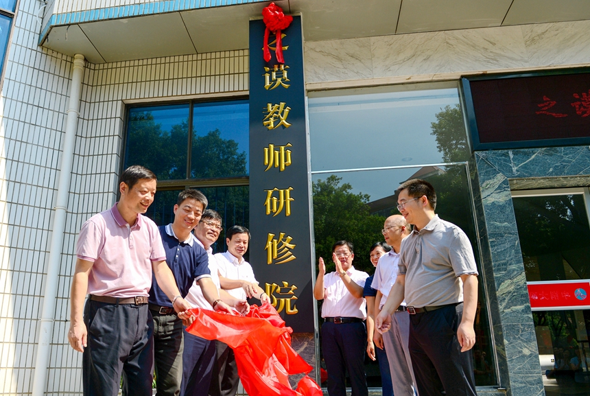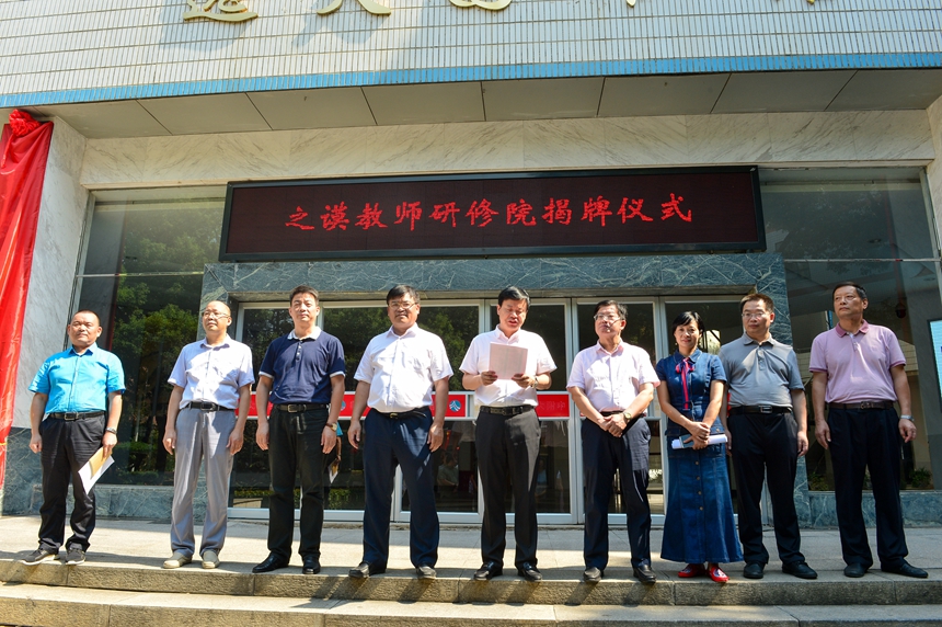 校长谢永红宣布了有关决定,之谟教师研修院执行院长杨帆老师作了表态发言,之谟教师研修院院长、党委书记黄月初发表讲话。最后,学校领导共同揭开牌匾上的红绸布,之谟教师研修院正式挂牌成立。