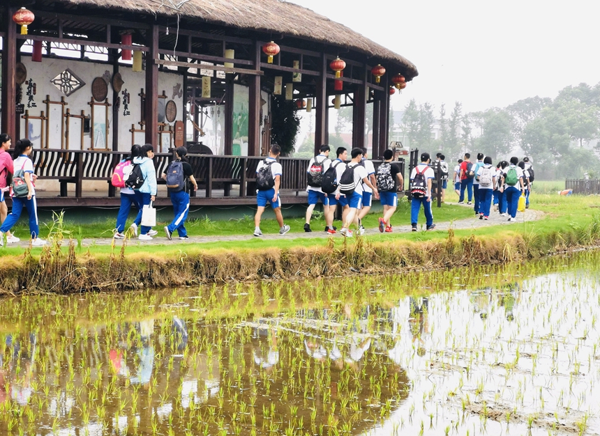 水田照亮了学子们的双眼。学校各班级同学团结协作,积极探究田间劳作,研究乡村风貌,感悟绿色生活。每一个城里孩子带着好奇来,又纷纷携着梦想归,便是少年们成长学习的新滋味。