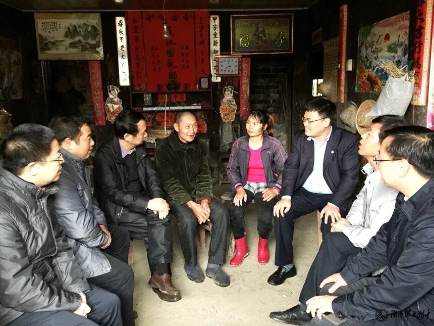 2015年11月,为认真贯彻落实省委《关于在“三严三实”专题教育中开展领导干部“进村入户、访困问需、访贫问计”活动的实施方案》,按照师大党委的统一部署,我校党委正式前往邵阳市绥宁县关峡苗族乡插柳村开展“一进二访”活动,开展由师大党委指定的附中扶贫工作。