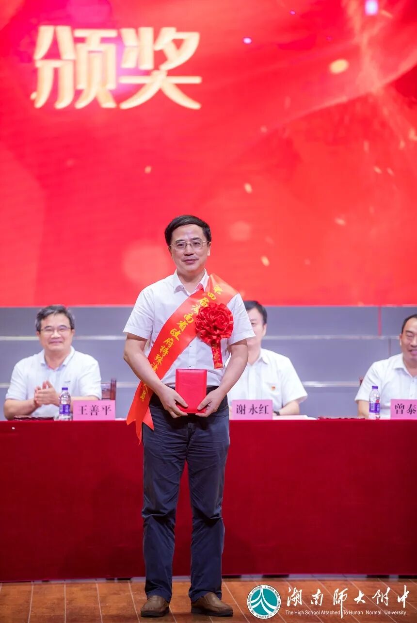 教师节是一个优秀者尽情绽放的美好节日!伴随着学校各项事业大丰收,大批优秀教师也收获了喜悦和荣誉。昨天下午,李勇、黄雅芩、朱昌明、杨群英等老师身披绶带,在长沙市人民会议中心接受了市委市政府嘉奖;今天下午,又有60余位老师佩戴红花,在这里接受学校的隆重表彰。在为这些优秀教师点赞的同时,我还要把点赞送给在座每一位附中人。你们立足本职岗位,勤勤恳恳精心教书,踏踏实实潜心育人,为学生的成人成才呕心沥血,为学校的持续发展默默奉献。新冠疫情突如其来,吴彩霞老师洋洋洒洒5000言的一封“家书”,为居家学习的孩子们廓清了心灵的迷雾;高三备战紧张繁忙,李勇老师“风里雨里,我在惟一楼等着你”,日日夜夜守望麦田,静候花开;忙完竞赛,又战强基,朱昌明老师“为伊消得人憔悴”,心中装着的全是班上的每一个孩子;“曾爹”曾克平老师可亲可爱,考上中央美院等一流名校的学生们感念师恩,给他送来写有“爱生如子,德才兼备”的锦旗;距退休只有2年的杨帆老师说,再不疯狂我们就退了,在模范履行教育教学职责的同时醉心教育科研,一年多时间编著或组织编著4部学术专著;不慎摔伤的贺忠良老师放弃休养,在爱人彭萍老师的搀扶下,一次次拄着拐杖走上讲台……有道是“爱在哪里,风景就在哪里”,这样的师爱满满的事例层出不穷,这样的动人风景充满整个校园。我为每位同事的工作业绩和专业成长由衷喜悦,为学校拥有这么多优秀教师无比自豪!