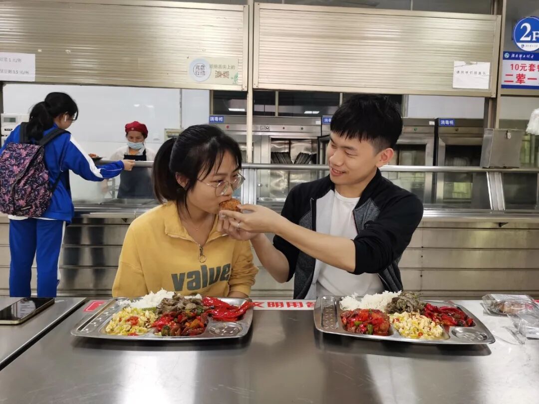 新婚的双职工夫妇李毛川和吴乐老师在食堂度过甜蜜双节。