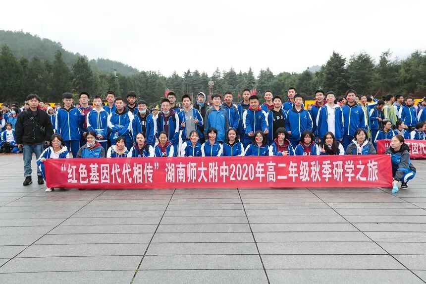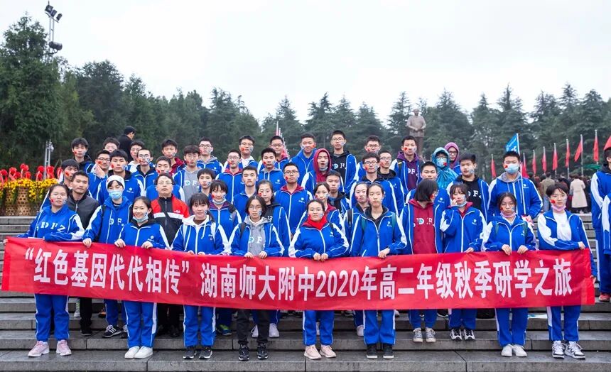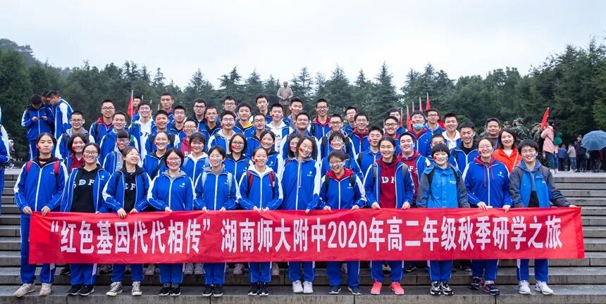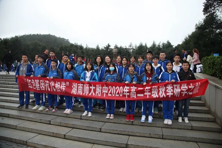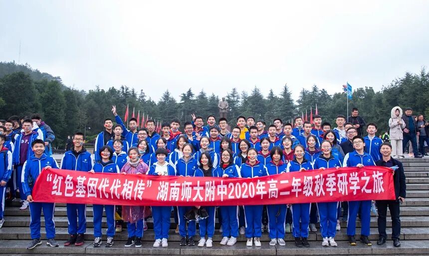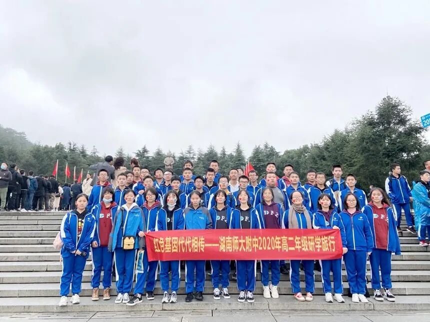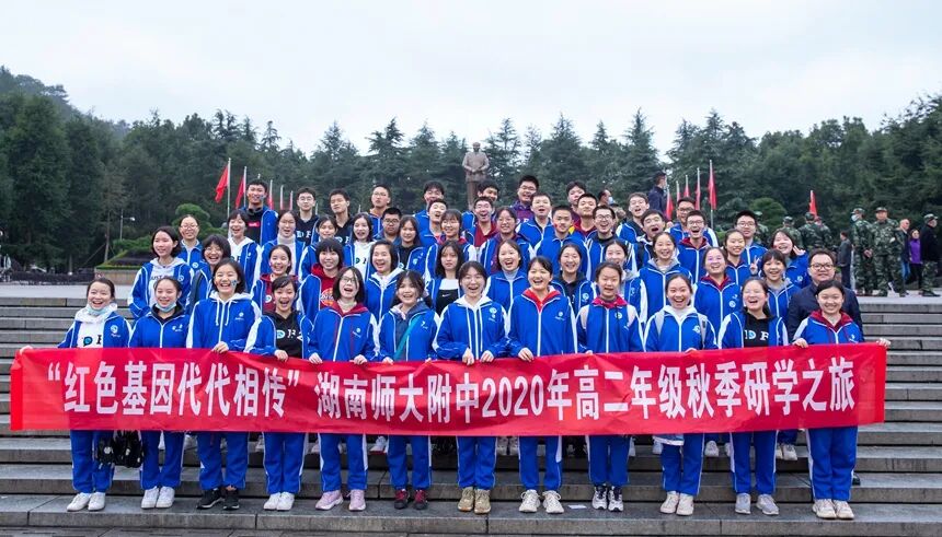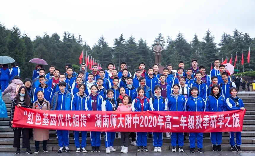 11月21日,在学校党委书记黄月初、纪检书记李春莲、德育与学生发展处主任吴卿、课程与教务处副主任朱修龙的率领下,湖南师大附中2019级千余名师生赴韶山、湘潭等地开展以“红色基因代代相传”为主题的研学活动,此次活动为期两天。