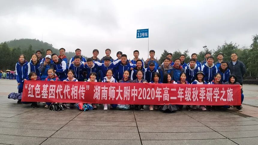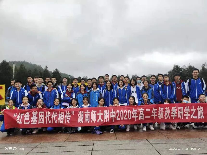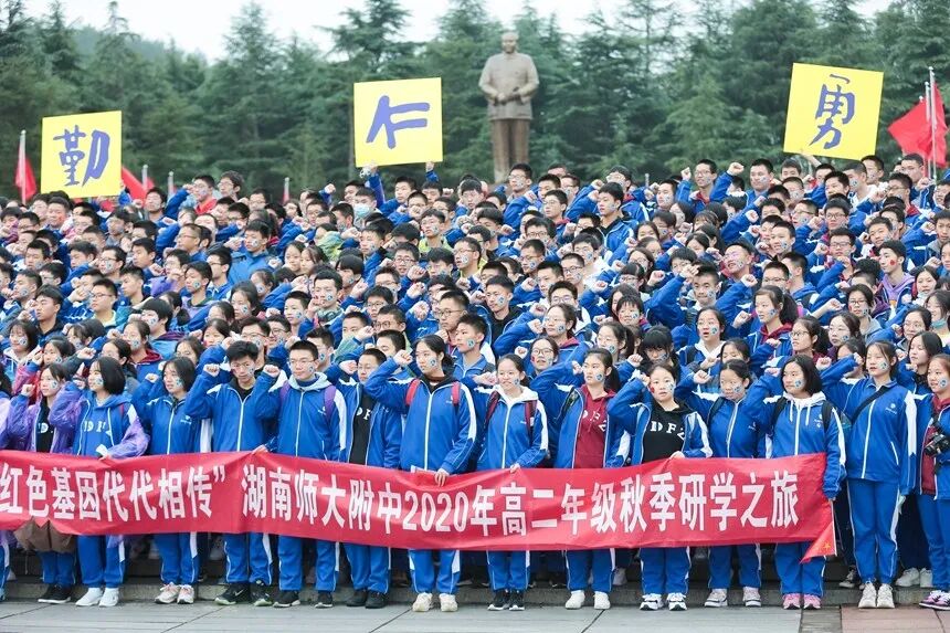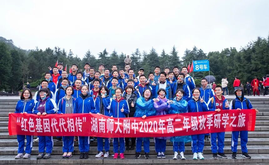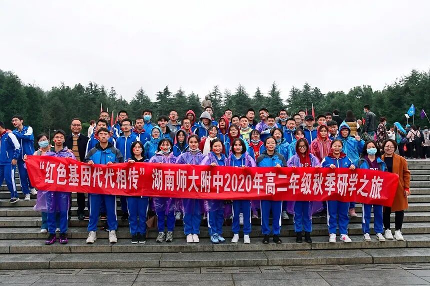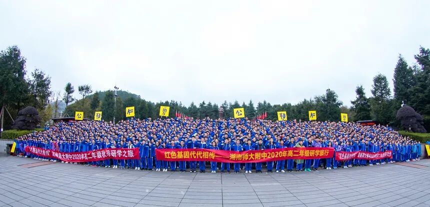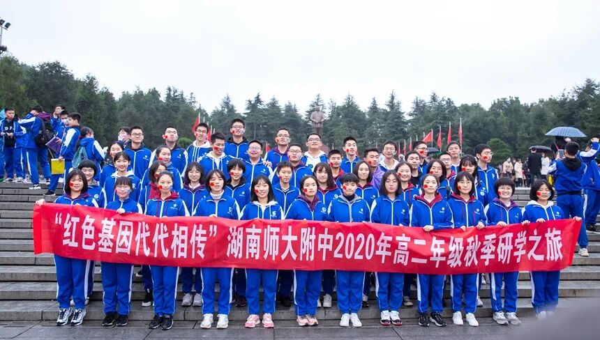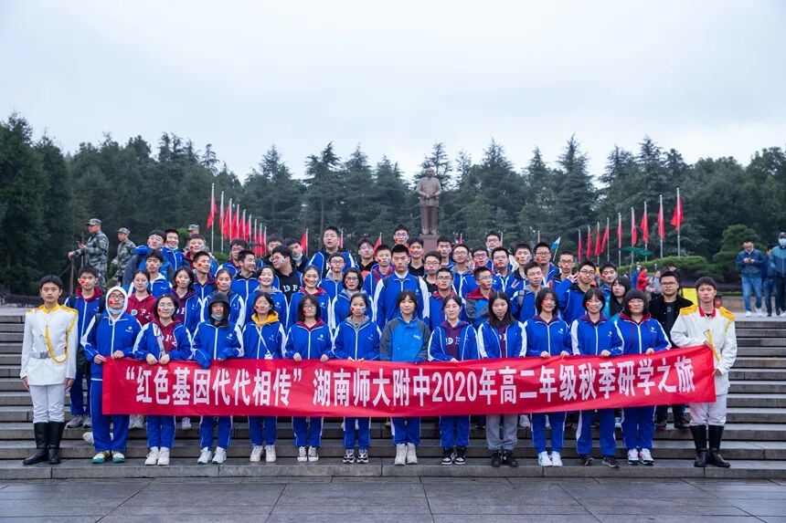 11月21日,在学校党委书记黄月初、纪检书记李春莲、德育与学生发展处主任吴卿、课程与教务处副主任朱修龙的率领下,湖南师大附中2019级千余名师生赴韶山、湘潭等地开展以“红色基因代代相传”为主题的研学活动,此次活动为期两天。