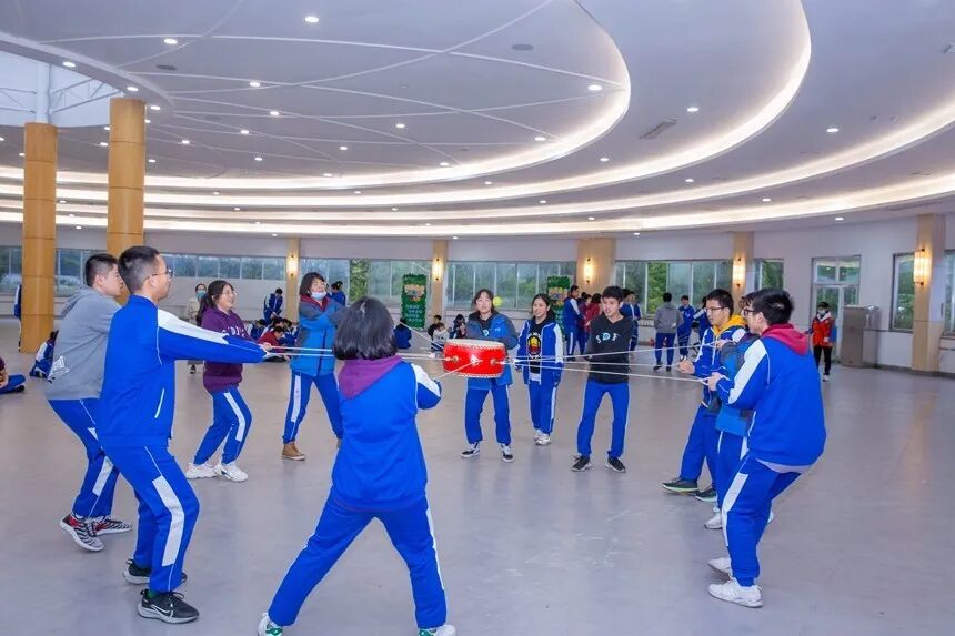 初冬阴雨霏霏,2019级师生冒雨赶赴湘潭盘龙大观园。按照计划,21日下午的活动以班级为单位分五组进行,各小组分别开展了“鼓动人心”、“能量传递”、“有轨电车”、“驿站传书”、“不倒森林”等研学活动,班级间友好竞赛,现场气氛热烈,活动过程精彩纷呈,高潮迭出。活动展现了同学们良好的沟通能力,培养了同学们的专注能力和倾听意识,增强了团队的整体意识、协作精神和凝聚力。