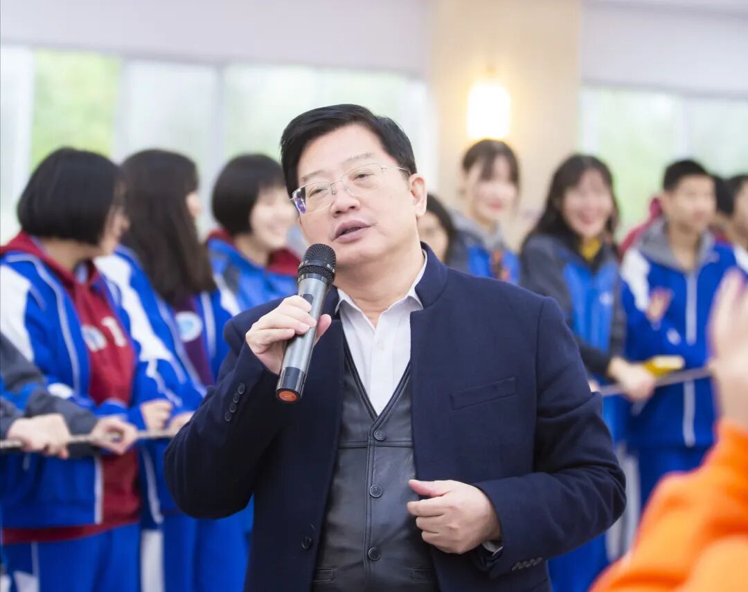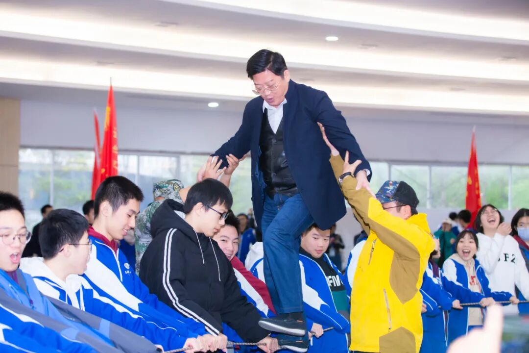 22日下午的研学课程“生命动力圈”将研学活动推向了高潮。同学们拉住绳索围成里外四层大圈,双手同时依次按照上、左、下、右的顺序做1050次画圈运动。平时看上去不可能完成的任务,在同学们的合力下取得了令人惊喜的成功。黄月初向“生命动力圈”发起挑战,顺利完成了动力圈上的漫步。他同时对精心策划本次研学活动的家长、全程陪同的老师、勇于挑战的同学们和耐心认真的工作人员表示了感谢,并表示对2019级同学的美好未来充满期待。