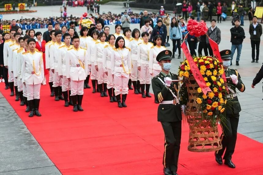 伟人故里缅怀先辈,不忘初心砥砺前行。21日上午九时,在毛主席铜像广场前,全体师生完成千人大合照。在李春莲书记的引领下,全体师生合唱红歌《我和我的祖国》和湖南师大附中校歌。接着,全体学生庄严宣誓:“我们将接续信仰之火,积蓄情怀之力。”学生仪仗队向主席敬献花篮,师生们向主席铜像三鞠躬致敬,缅怀一代伟人毛泽东,赓续革命精神,传承红色基因。