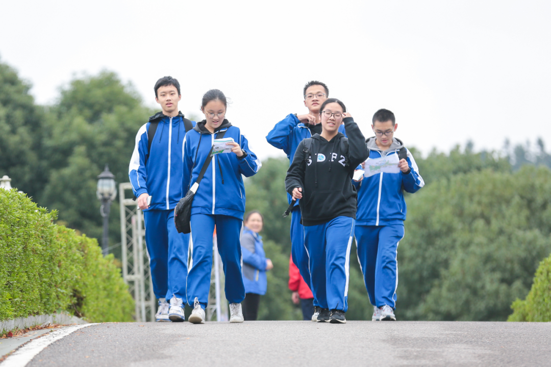 22日上午的“定向越野”活动以五人为一小组进行。定向越野的七个打卡地点均以附中校园内的标志性建筑命名,小组成员凭借定向地图和指北针,要求在尽量短的时间内完成七个地点的定向打卡任务。小组成员相互鼓励,克服困难,进一步培养了团队协作意识和决策能力。