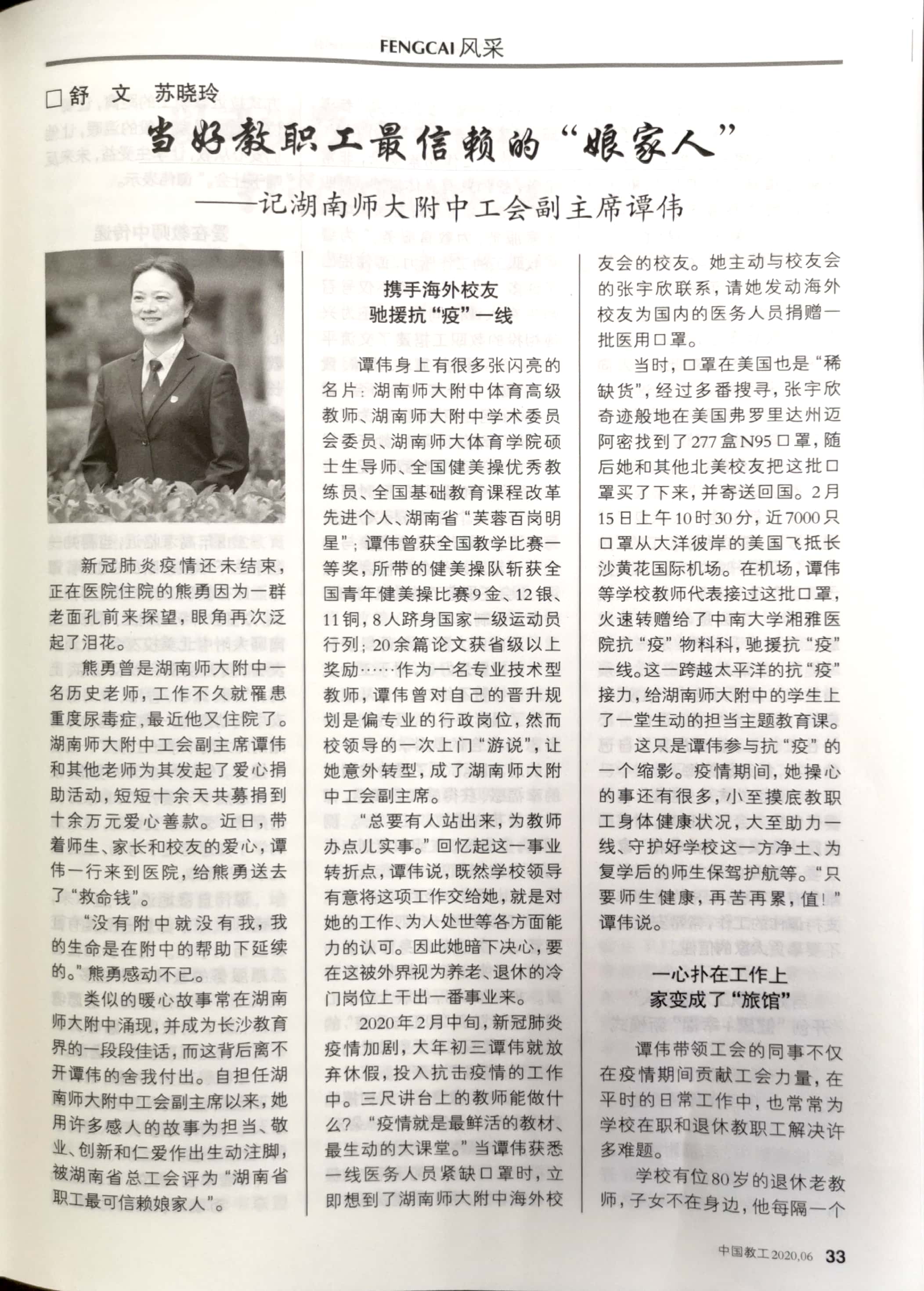 谭伟及工会的同事不仅在疫情期间发挥了重要作用,而且在平时的日常工作中,也常常为学校在职和退休教职工解了许多难题。